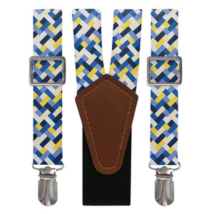 These basket weave print suspenders feel fresh and energetic thanks to the multiple colors it weaves together. Customize the Bask suspenders to match your wedding colors, work attire or everyday wardrobe. The basket weave print is an easy way to tie multiple colors together.
