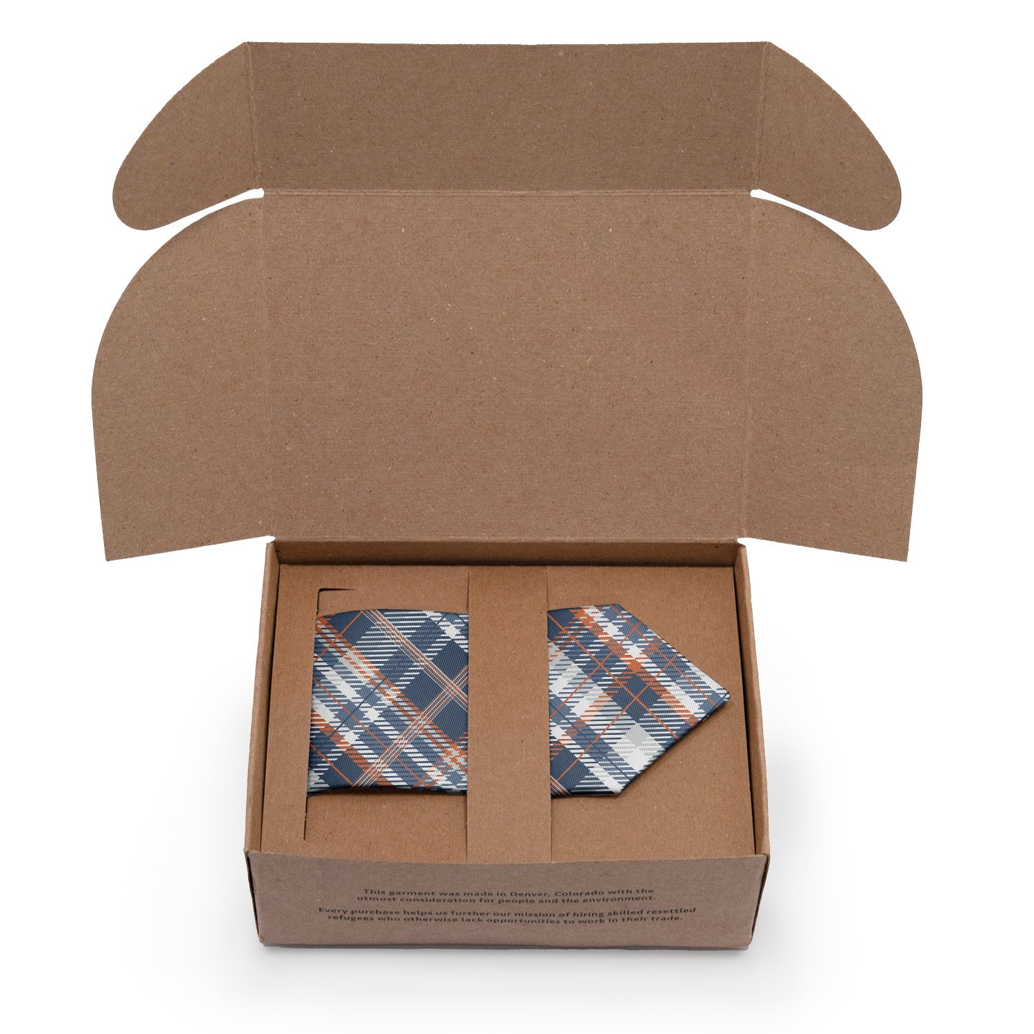 We print all our neckties on a high quality twill fabric made from recycled plastic bottles that we have milled specifically for our ties. Our recycled poly twill fabric has the soft sheen and feel of a semi-matte silk.