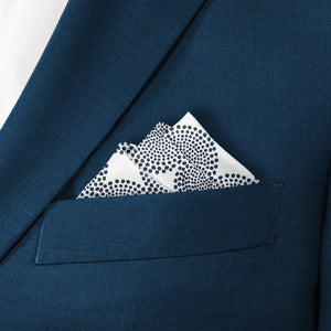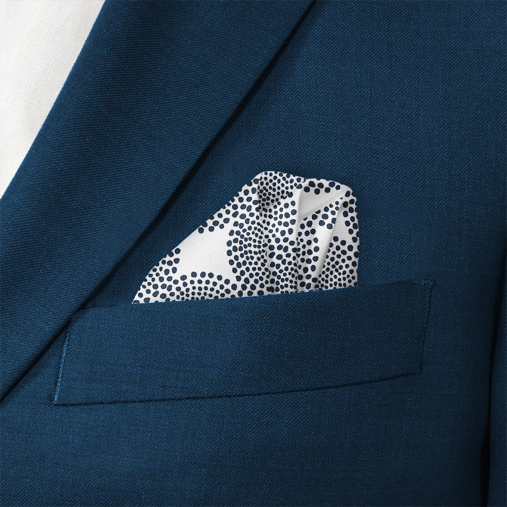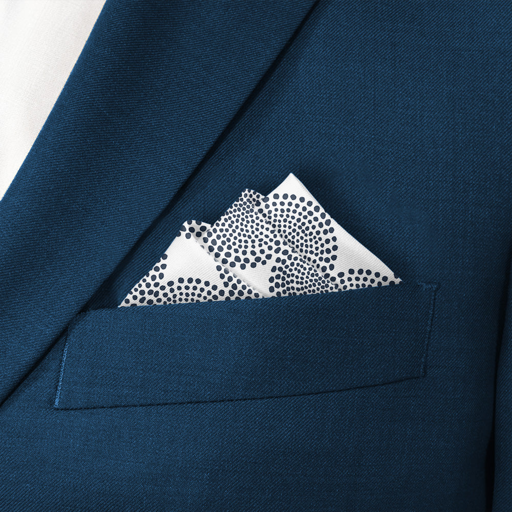 We print all our pocket squares on a recycled twill fabric made from plastic bottles that we have milled specifically for our products. We print our pocket squares on a single side and finish the edges with a fine purl edge. The back side of the pocket square will be unprinted.