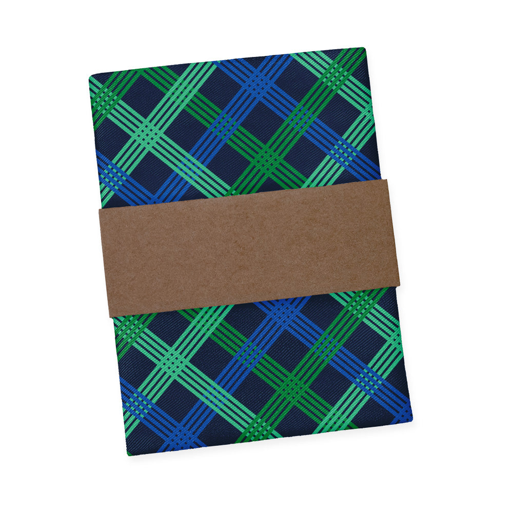 Interwoven stripes in three colors create a distinctive and energetic plaid pocket square with modern appeal. Design your own pocket square in the Belmont Plaid pattern by selecting the stripes and background in your own color combination. The customizable colors make it easy to visually tie your wedding party together, making it a great fit for groomsmen.