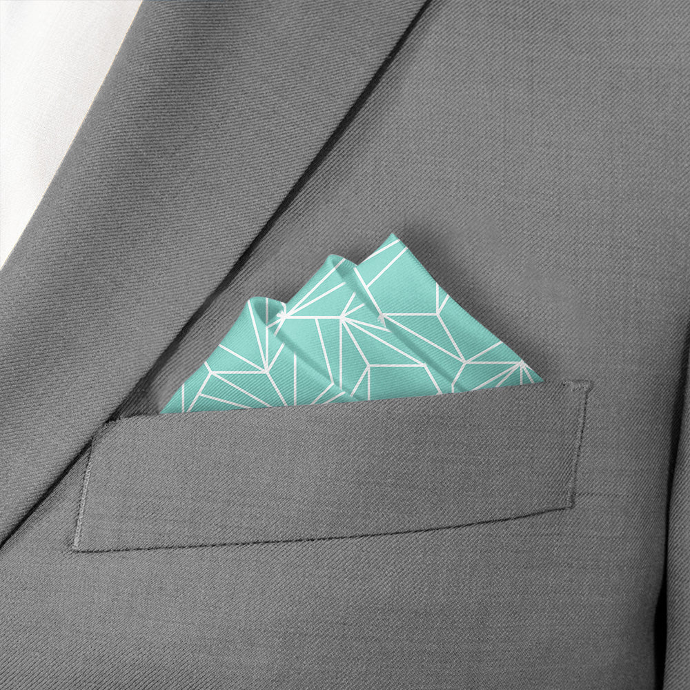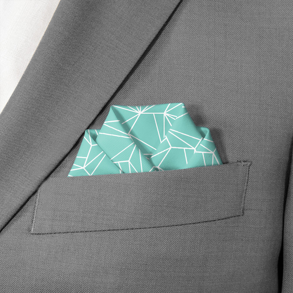 The faceted geometric pattern is a sharp and stylish choice for groomsmen, especially since the colors can be customized to match your wedding scheme. The large geometric pattern of the Bert Geometric pocket square can be a surprising abstract compliment to polka dots, stripes, repeating motifs, or even florals.
