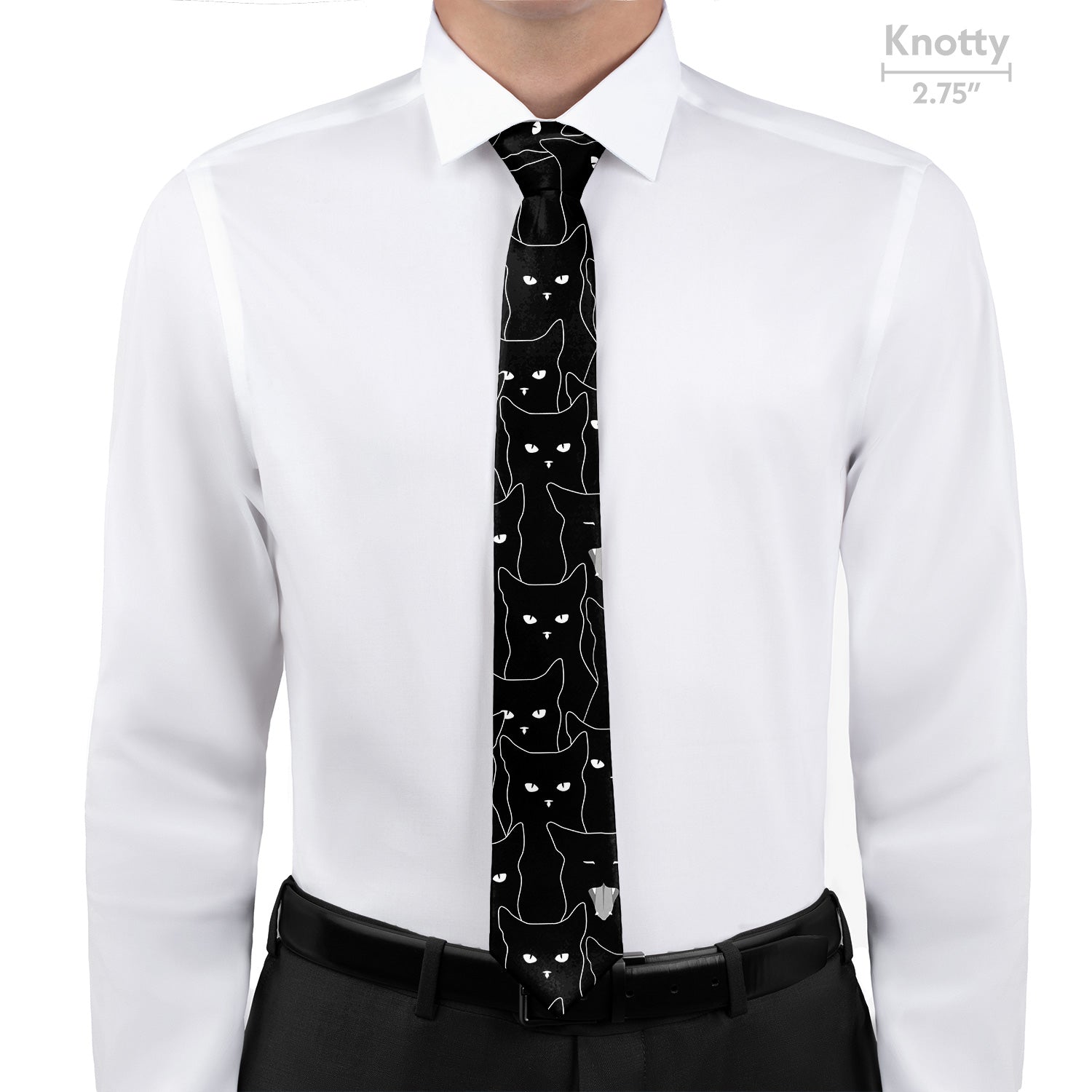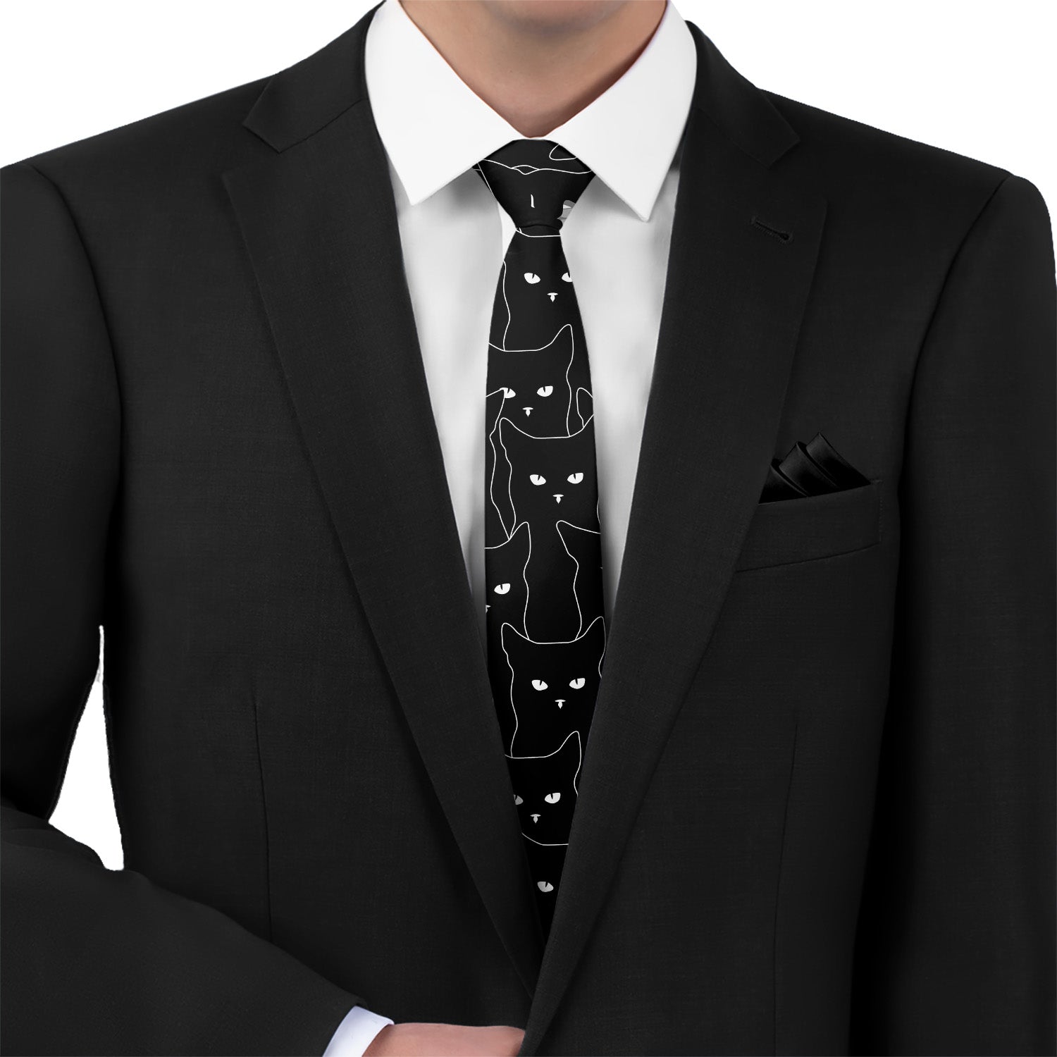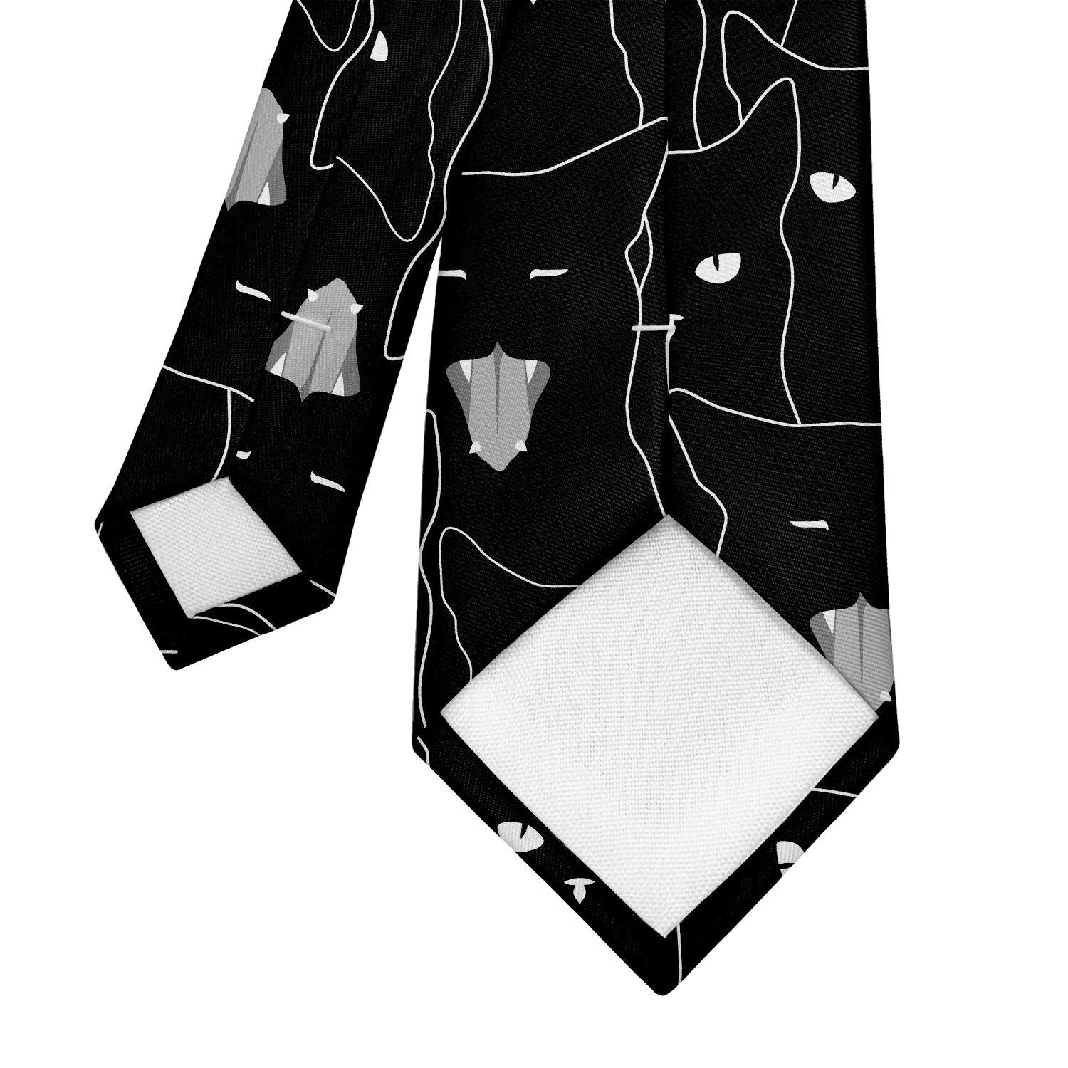 The perfect gift for the feline lover: our stylish Black Cats Necktie. With its repeating cat design, this necktie is sure to be a conversation starter. Add a pop of personality to any outfit with this fashionable accessory.