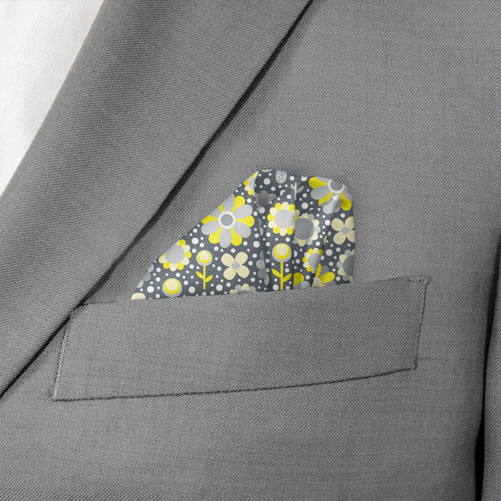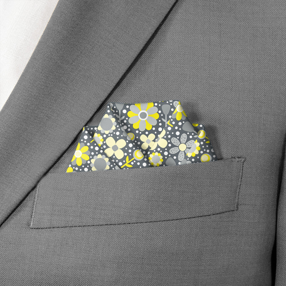We print all our pocket squares on a recycled twill fabric made from plastic bottles that we have milled specifically for our products. We print our pocket squares on a single side and finish the edges with a fine purl edge. The back side of the pocket square will be unprinted.