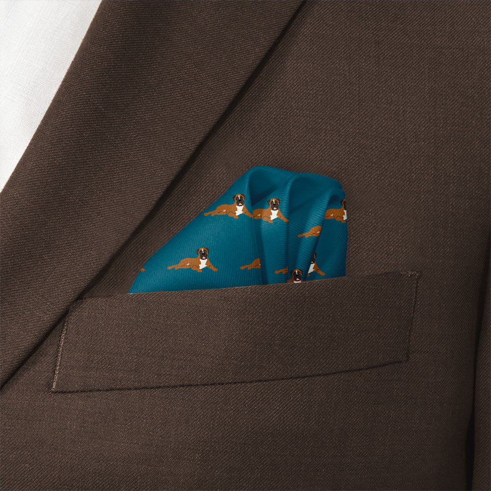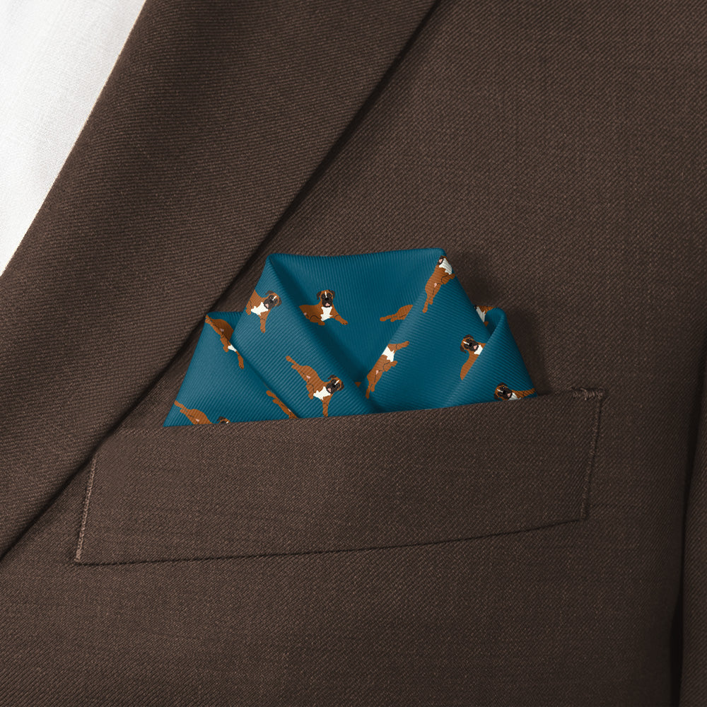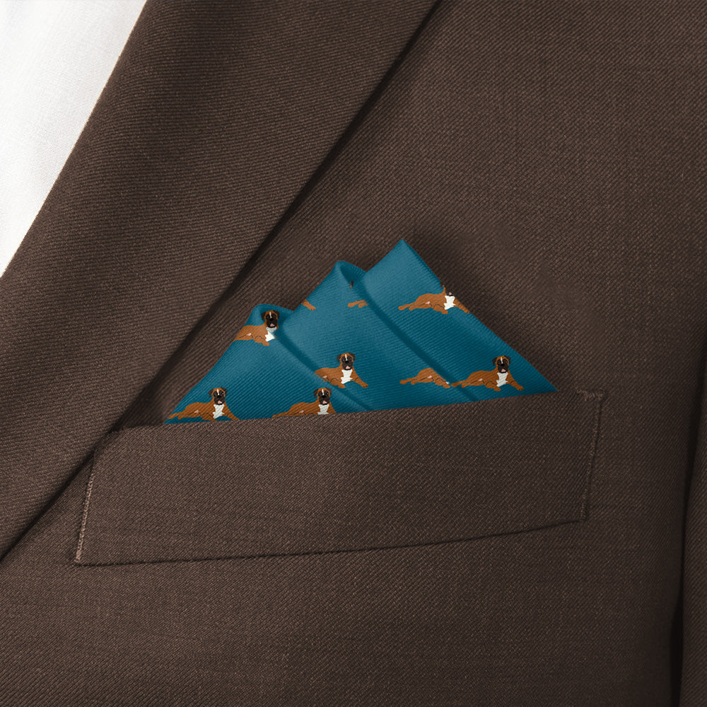This dog pocket square captures the loveable Boxer's friendly nature and distinctive head shape. The Boxer pocket square is perfect for anyone who loves these friendly and faithful companions.