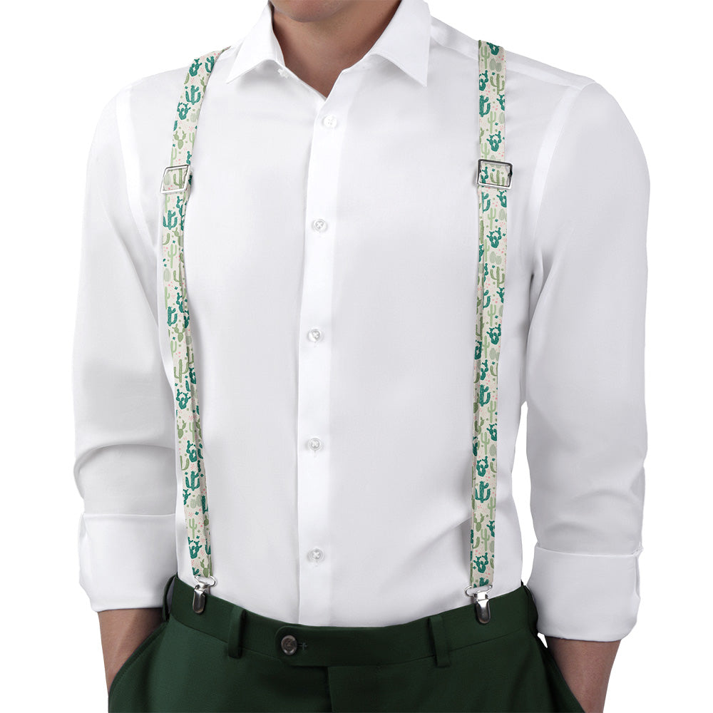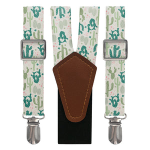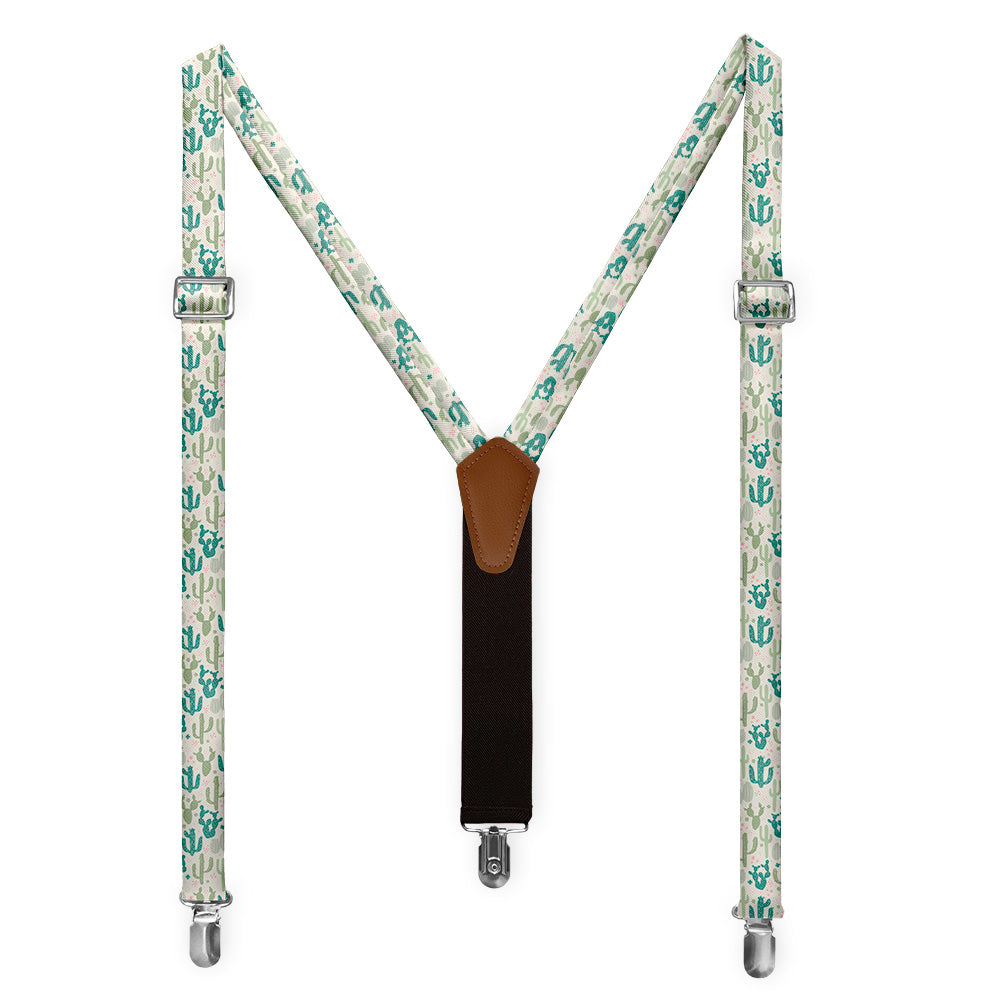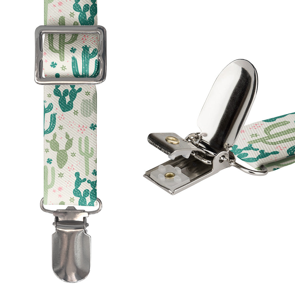 These Cactus Party suspenders are the perfect summer accessory for your special occasion. Unique and eye-catching, these suspenders feature a cactus pattern for a fun, bright look that brings your outfit to life. The perfect accessory for weddings, summer picnics, and more!
