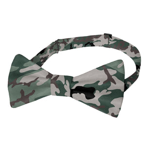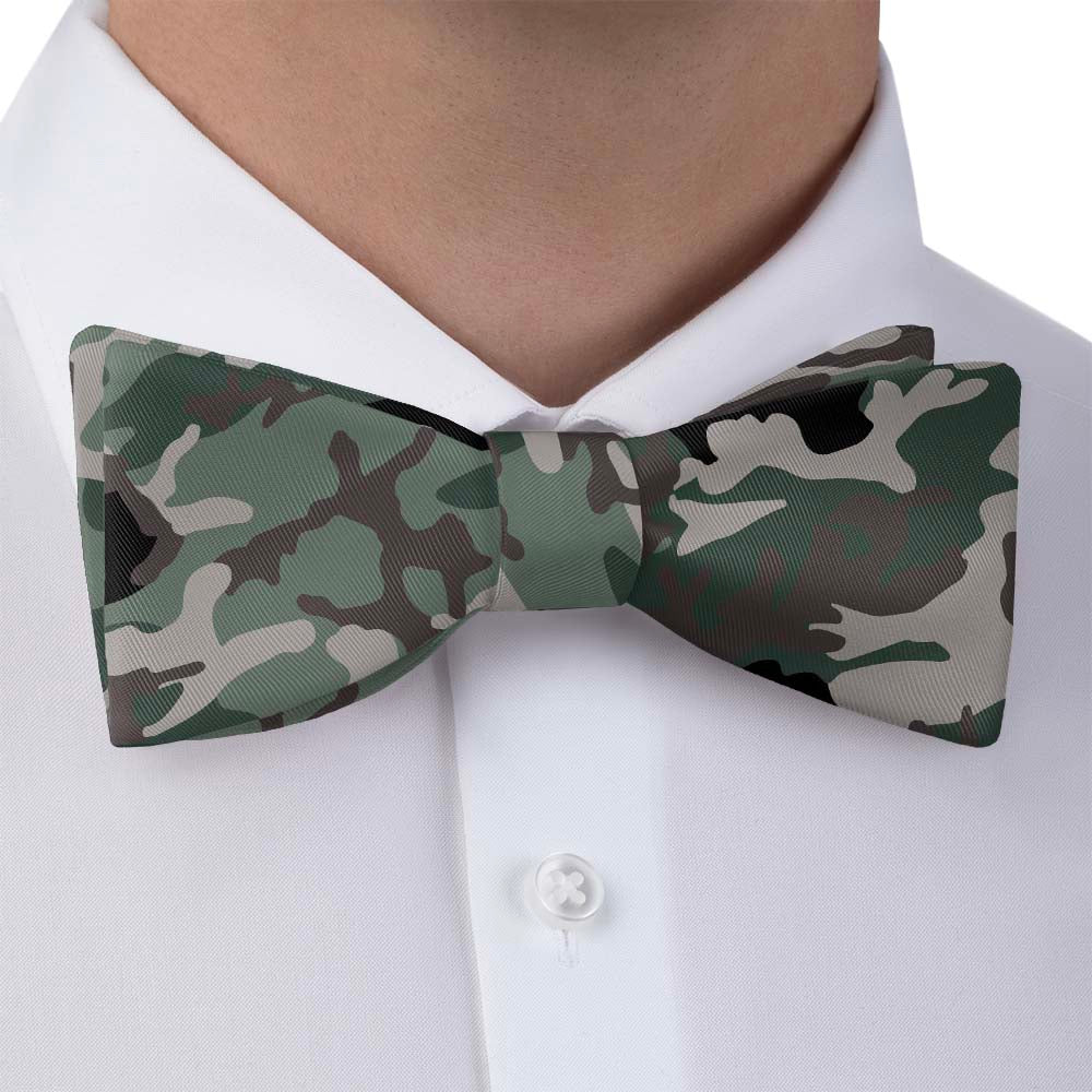 Made from a recycled poly twill that's as rugged as you are, this camo tie will look sharp for years to come. The rustic camo pattern fits most naturally with more casual fabrics and colors. For casual wear, pair the Camo bow tie with dark denim and a brown parka.