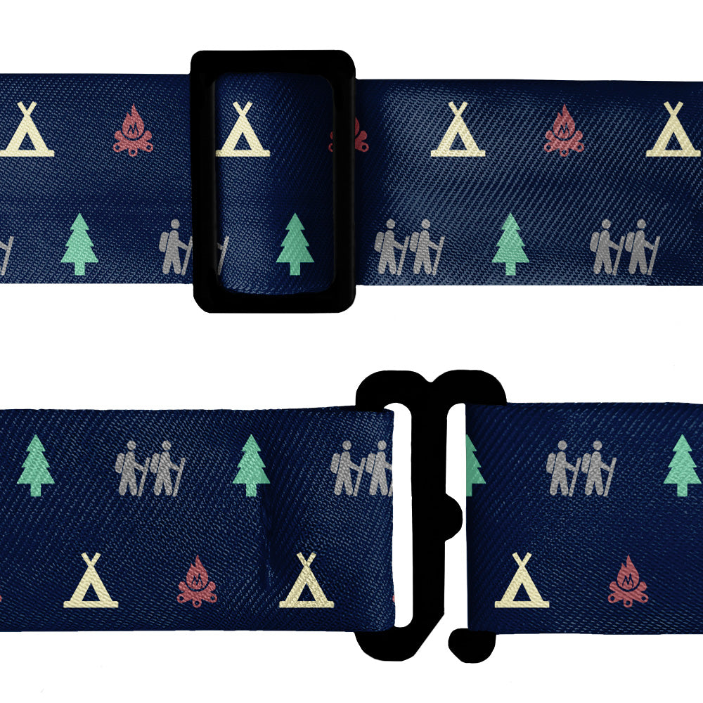 The smell of a campfire is the only thing missing from this camping themed tie, inspired by the wealth of outdoor activities in Colorado. One of our most popular patterns, this camping tie features tents, pine trees, campfires, and hikers. These lively outdoor bow ties are perfect for everyday wear and special occasions alike.