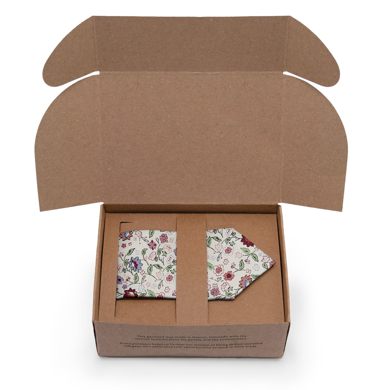 Sustainably sourced thoughtful packaging ready for gifting with 100% recycled and recyclable paper printed with vegetable inks.