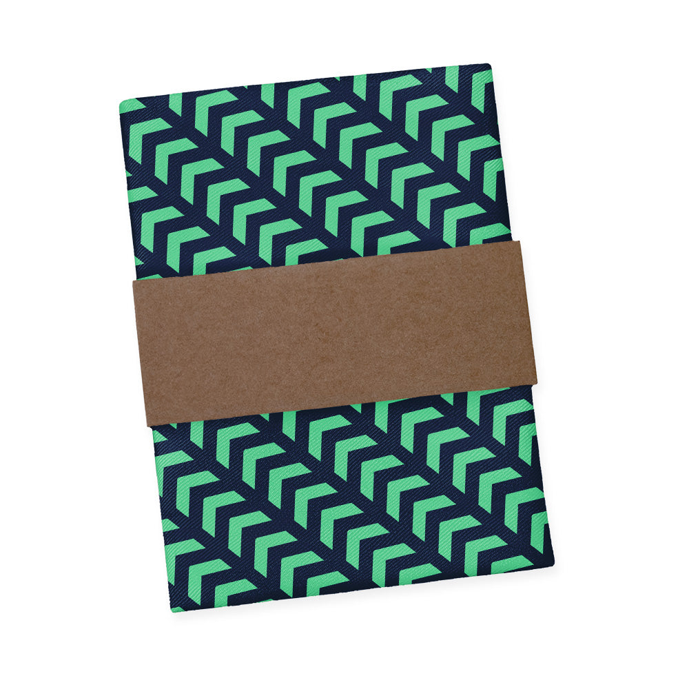We print all our pocket squares on a recycled twill fabric made from plastic bottles that we have milled specifically for our products. We print our pocket squares on a single side and finish the edges with a fine purl edge. The back side of the pocket square will be unprinted.