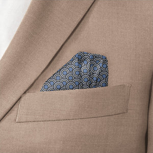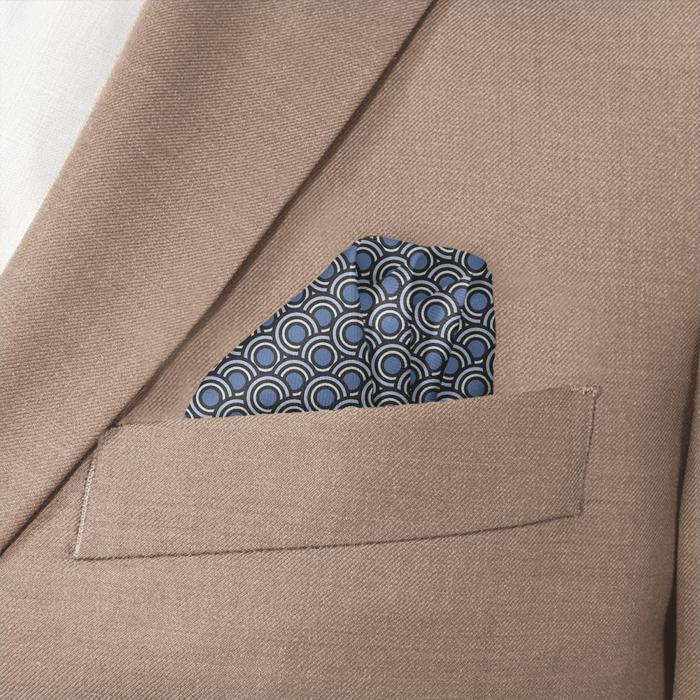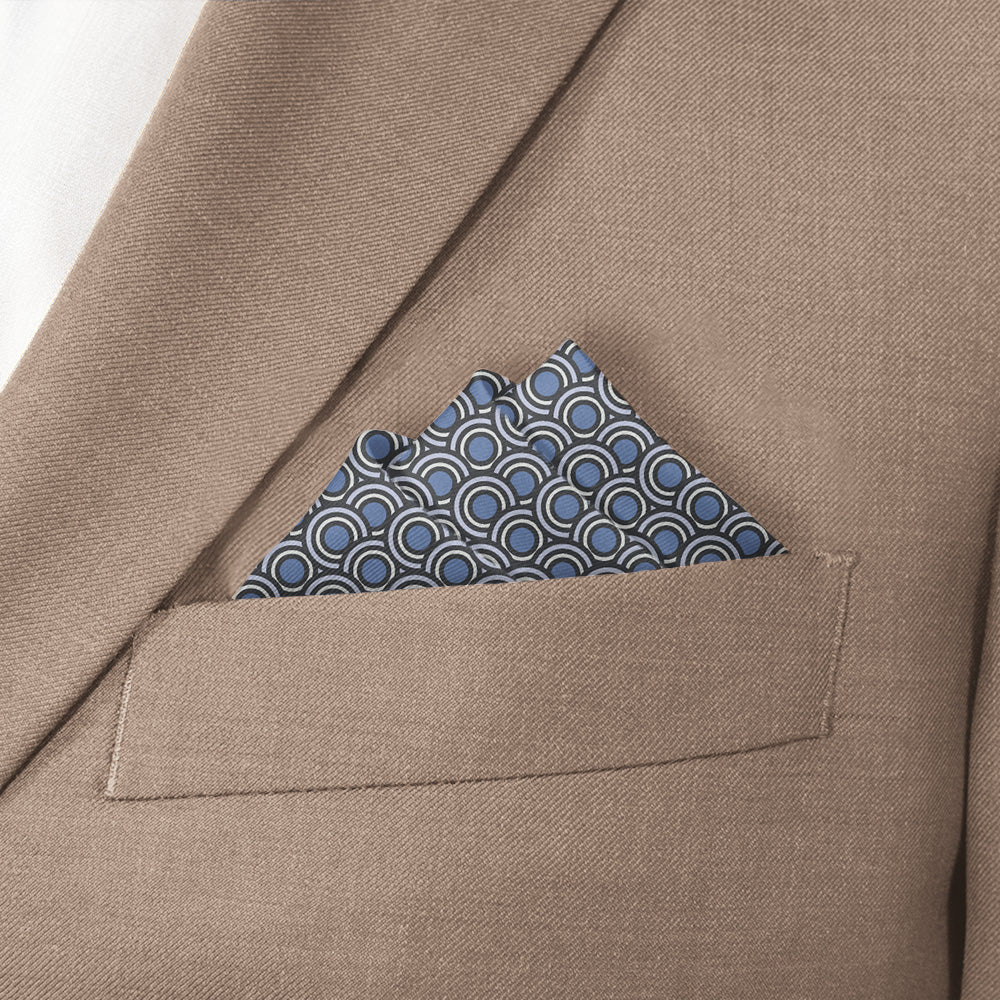 Unlike silk, our lustrous poly twill doesn't need harsh chemical dyes. Instead, we print the circle design, making it easy for you to customize them for weddings or other special events. As shown, the Circles pocket square adds classic elegance to a navy blazer.