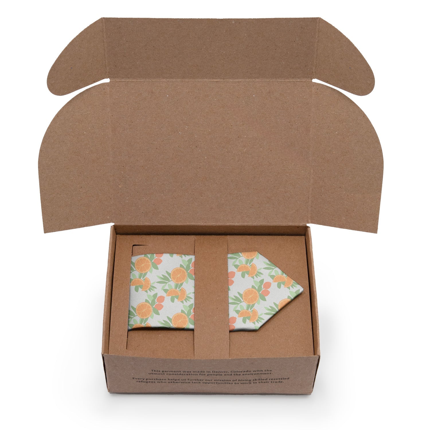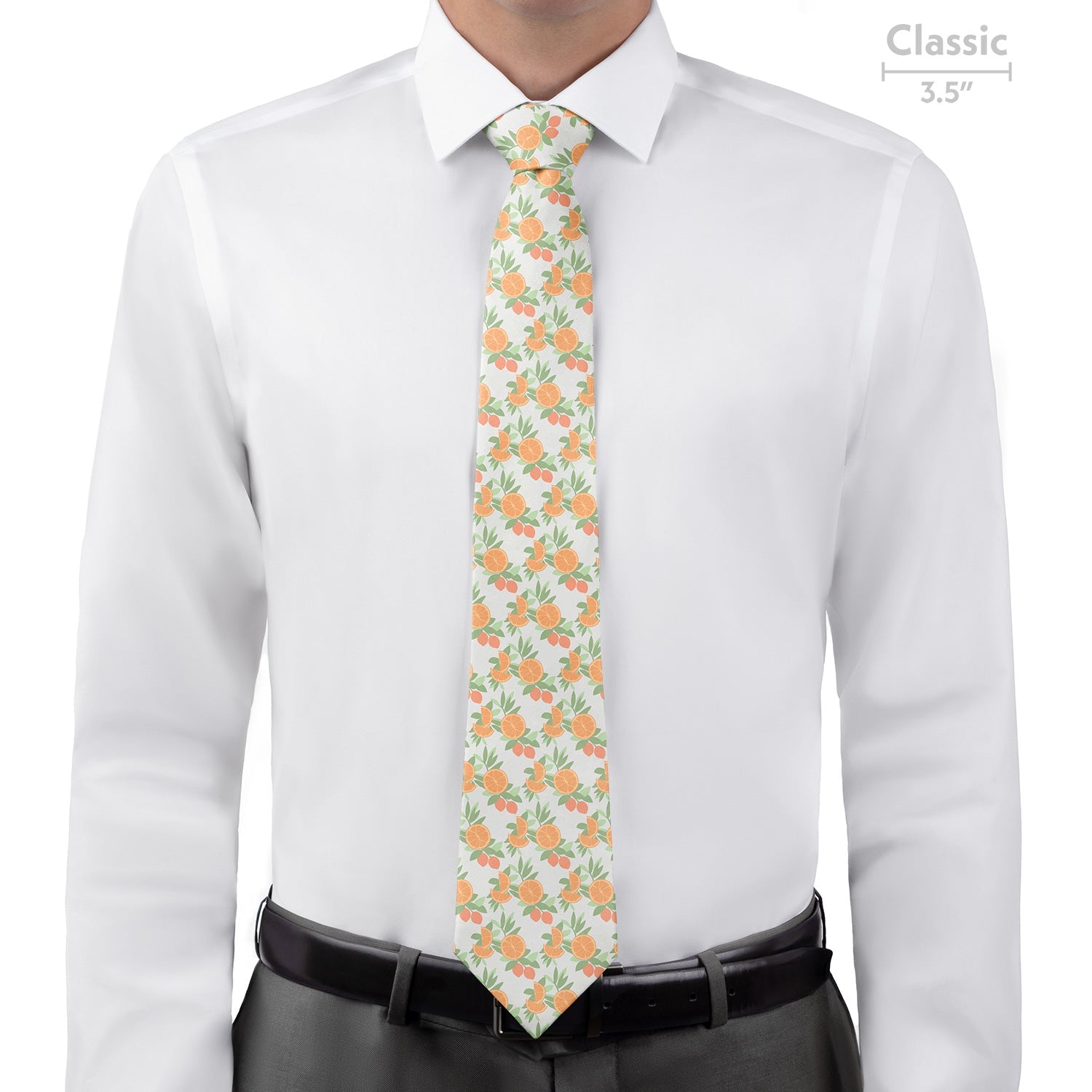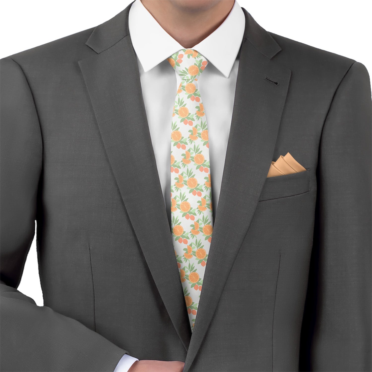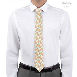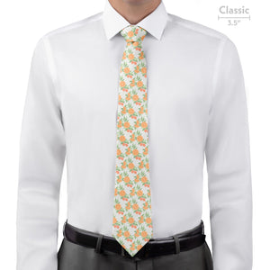 The bold pattern works well to unify a range of mix-and-match groomsmen suit options. A natural compliment to a blue suit, these bright citrus shades also add a fun pop of color to black or gray. Try pairing the Citrus Blossom Floral necktie with a colorful pocket square in a matching color.