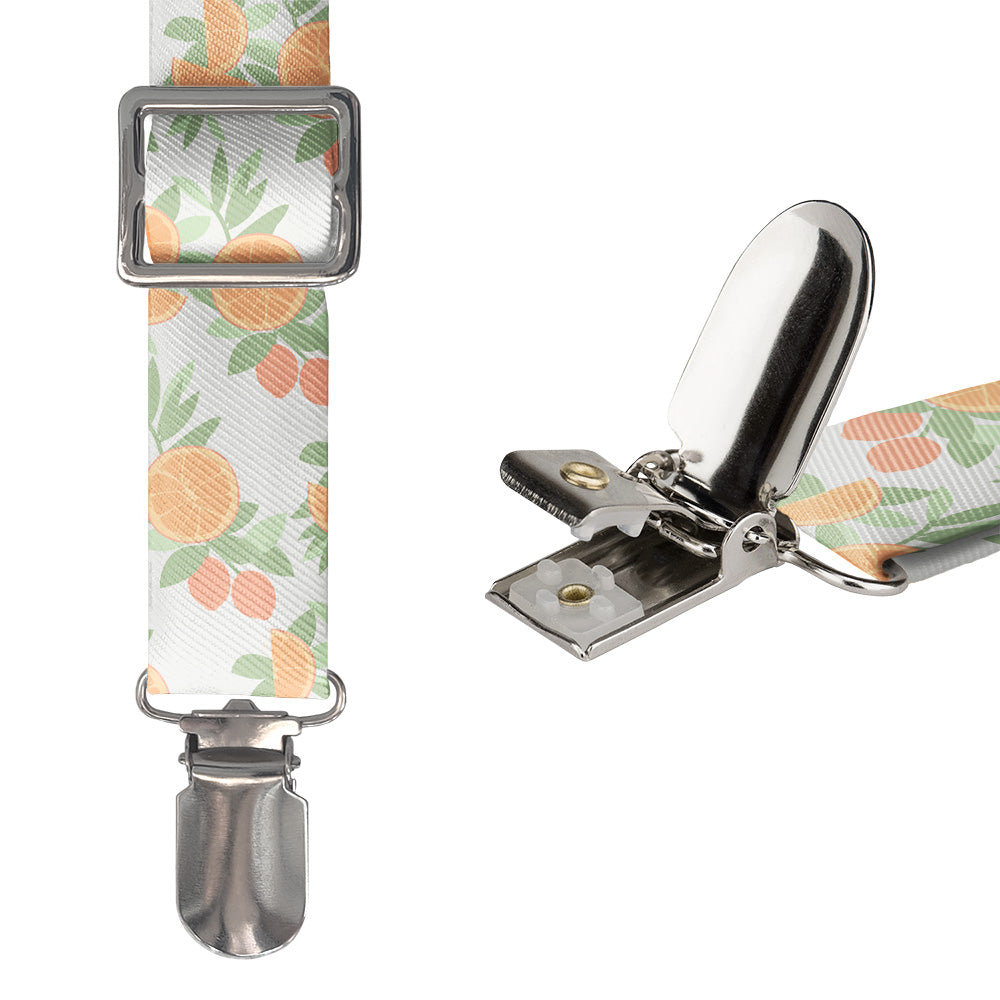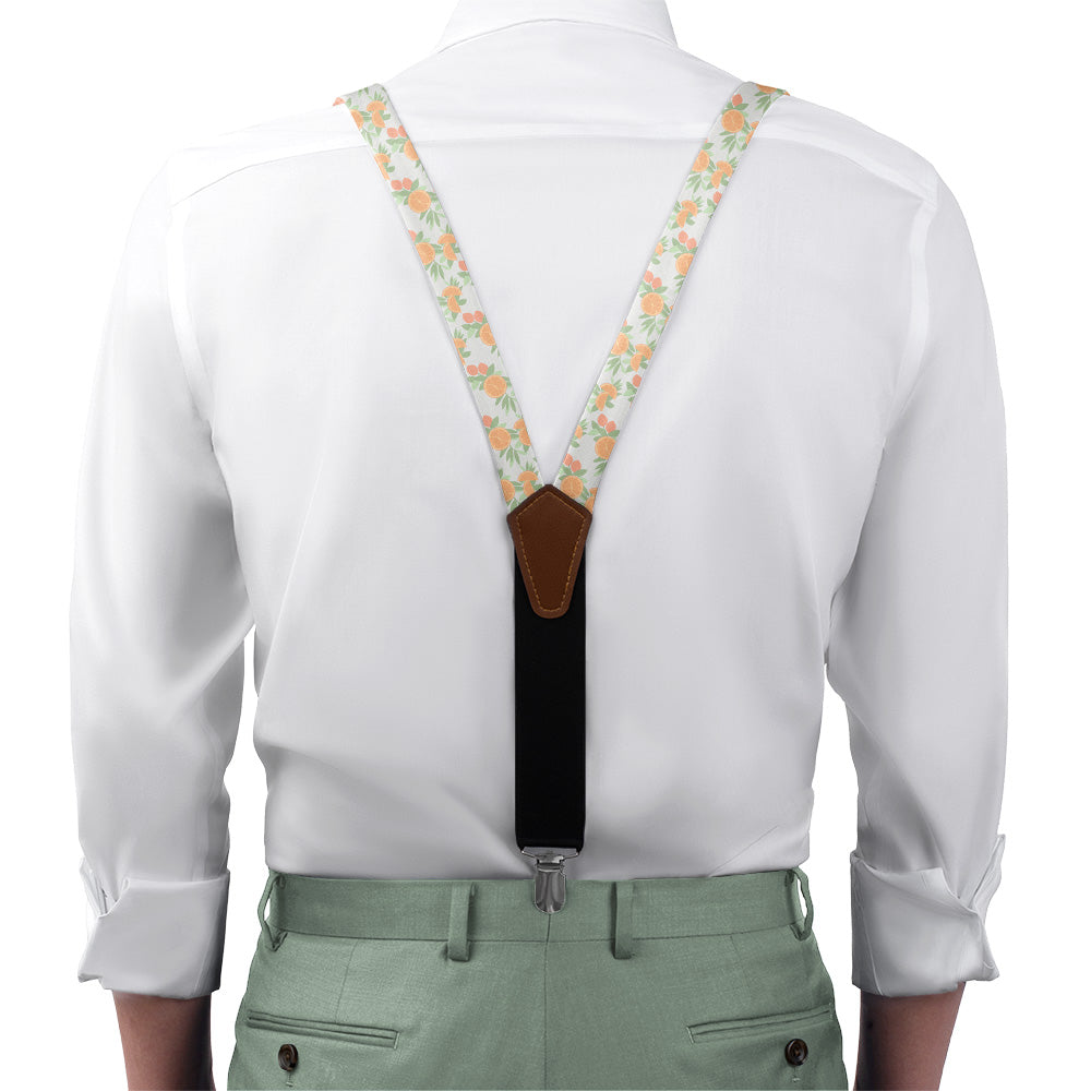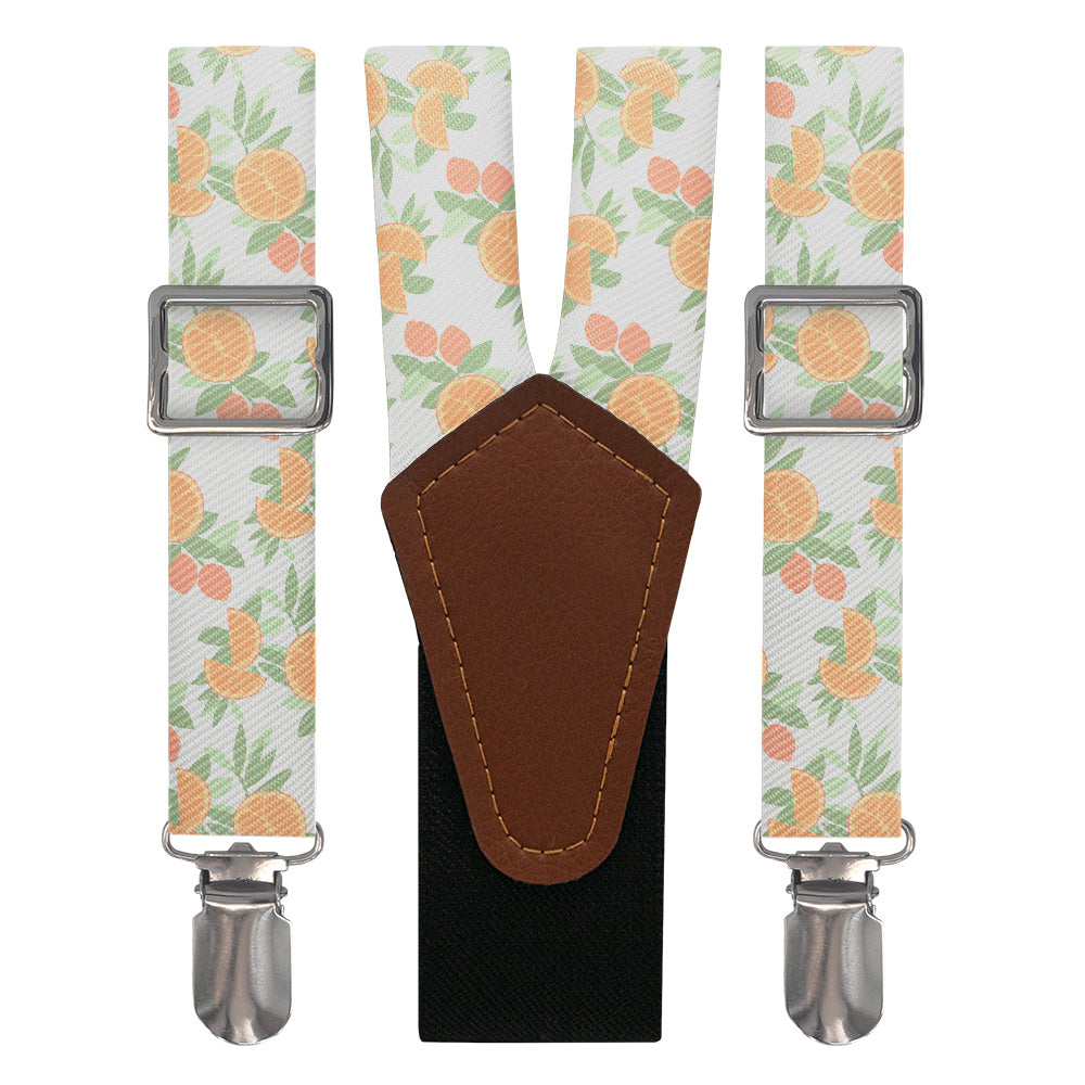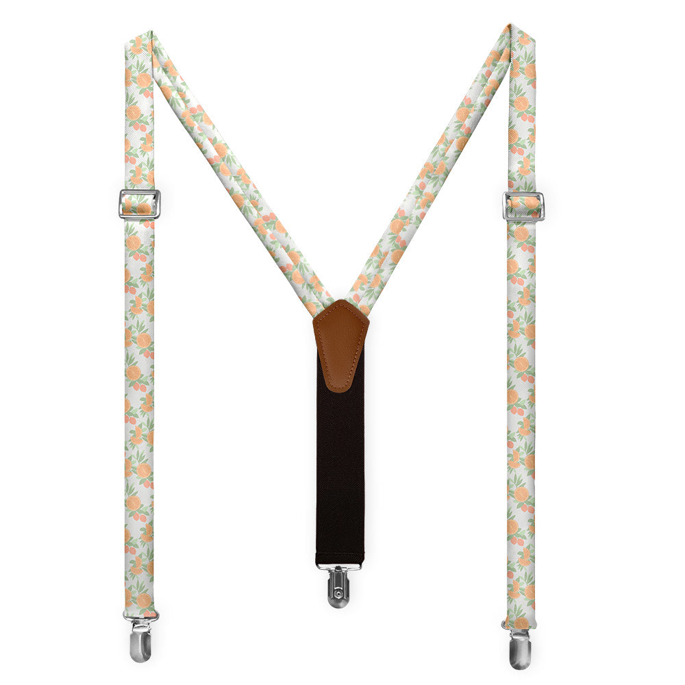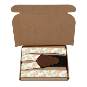 Floral suspenders get a dose of vitamin C with juicy orange slices brightening sprigs of leaves and branches of citrus fruit. The customizable colors are so vivid you can almost taste them! As wedding suspenders, the bright citrus pattern adds a dash of sunshine to any ceremony.