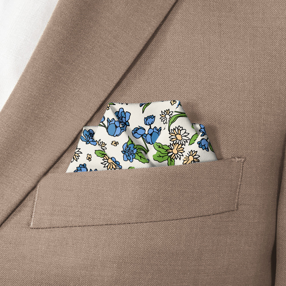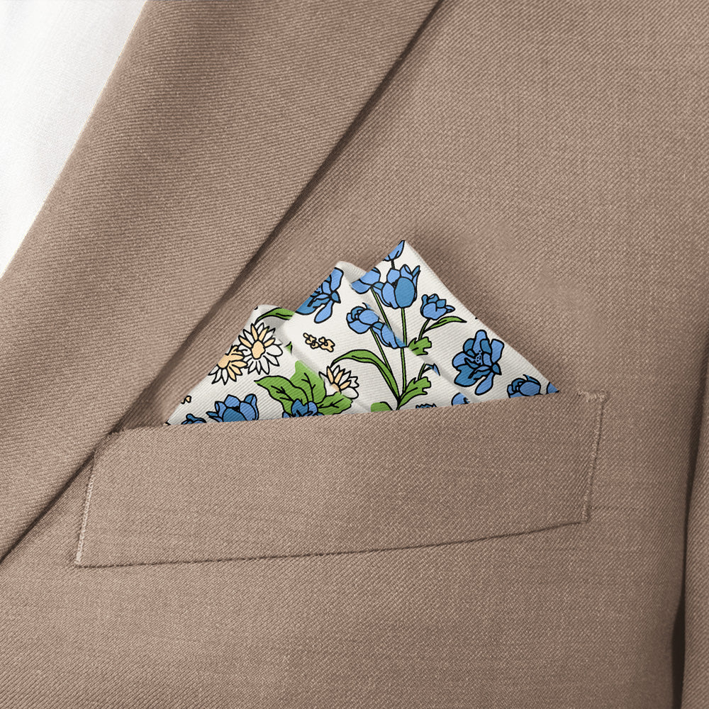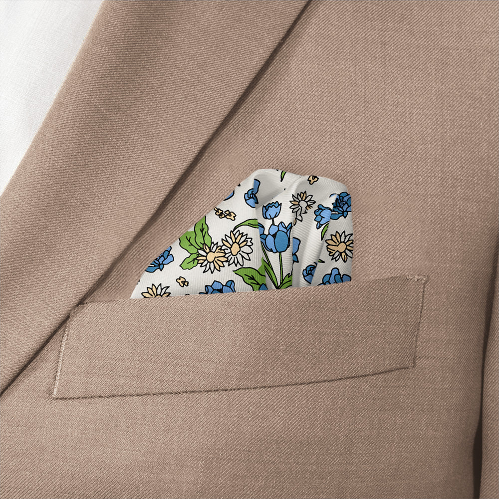 The Clara Floral Pocket Square reflects the freshness of spring with its bright, freshly picked floral pattern. This pocket square adds a vibrant yet sophisticated accent to your ensemble. Ideal for both formal events and smart-casual looks, its customizable color options allow for easy coordination with suits and dress shirts, providing a tasteful touch of seasonal elegance.
