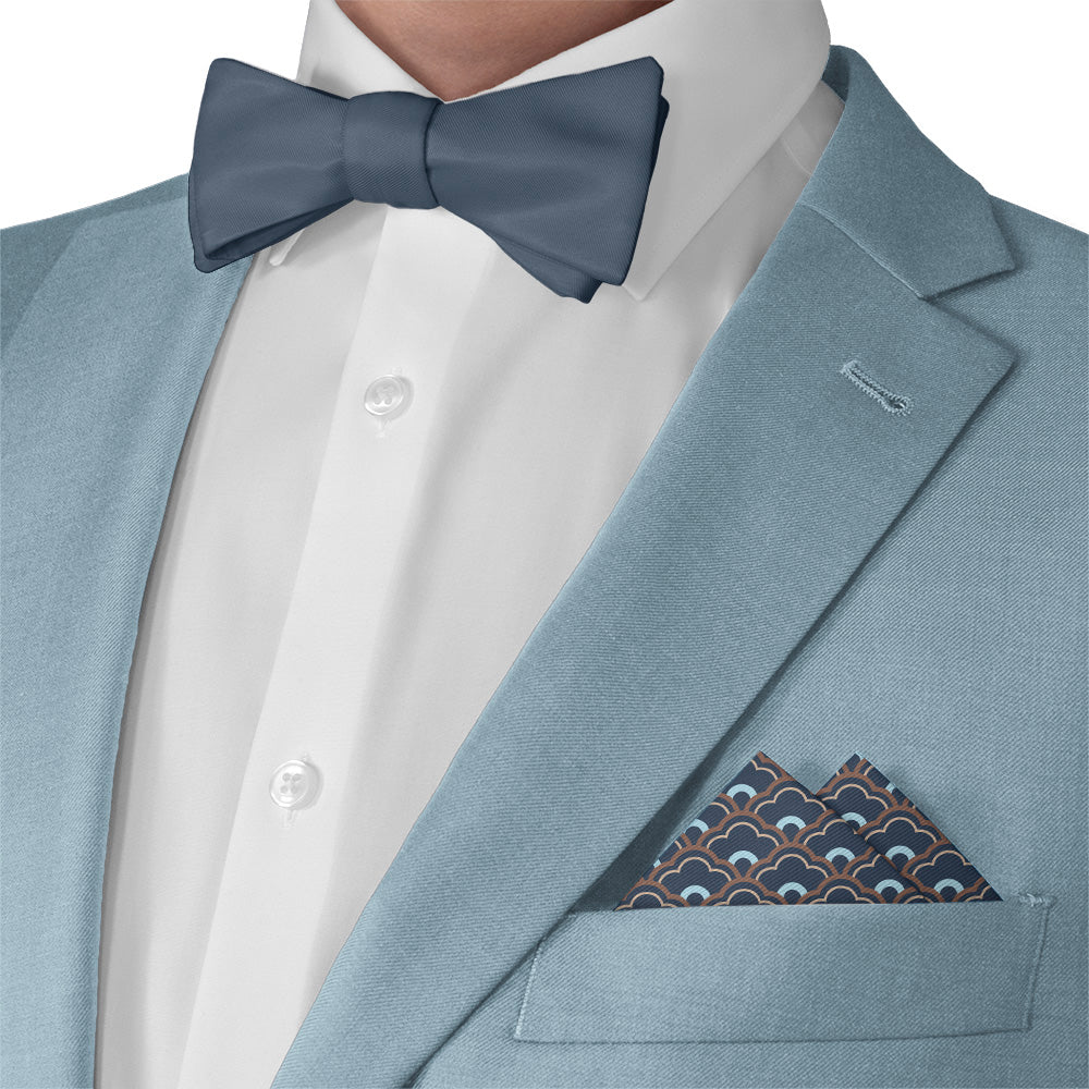 We print all our pocket squares on a recycled twill fabric made from plastic bottles that we have milled specifically for our products. We print our pocket squares on a single side and finish the edges with a fine purl edge. The back side of the pocket square will be unprinted.