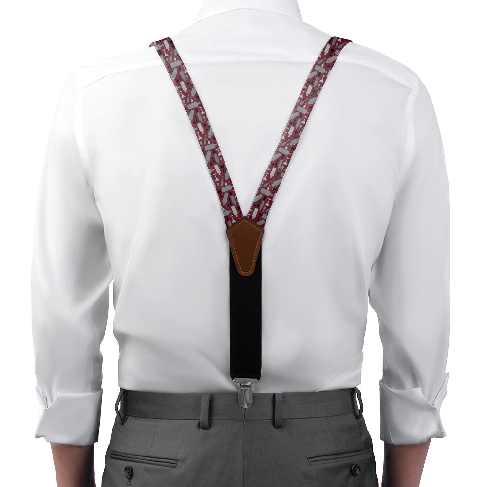 This design features a well-balanced blend of bottles, shakers, martinis, goblets, and even shot glasses. Perfect for the bartender, bootlegger, or liquor aficionado in your life. These Cocktail suspenders combine the disorder of a long night out with simple icons more suitable for formal occasions. No matter the setting, you’ll be sure to have a good time wearing this design.