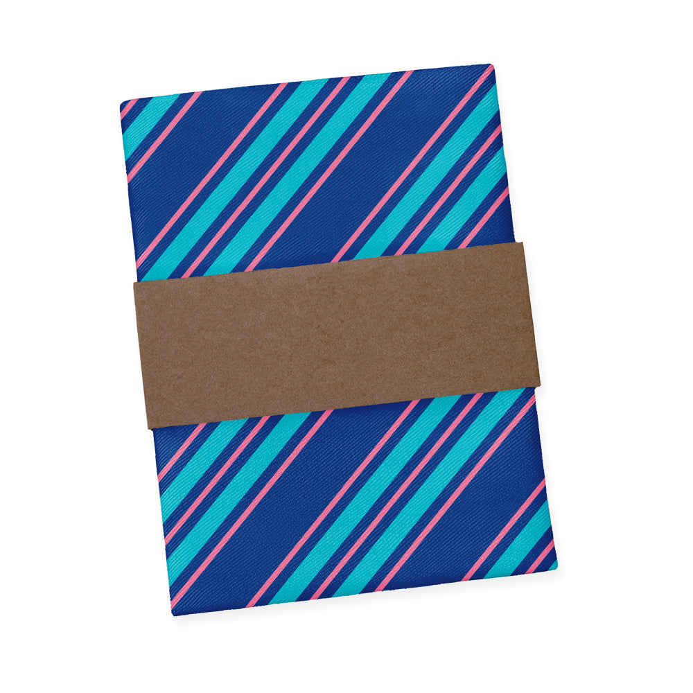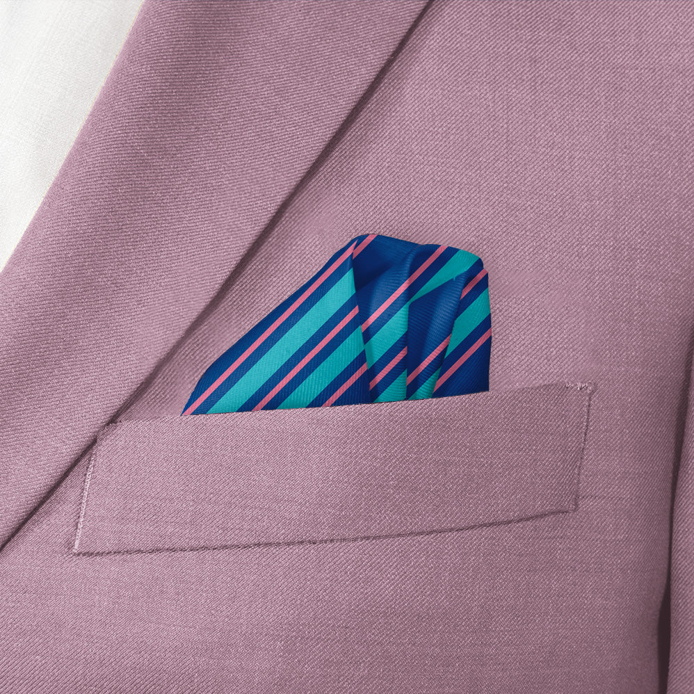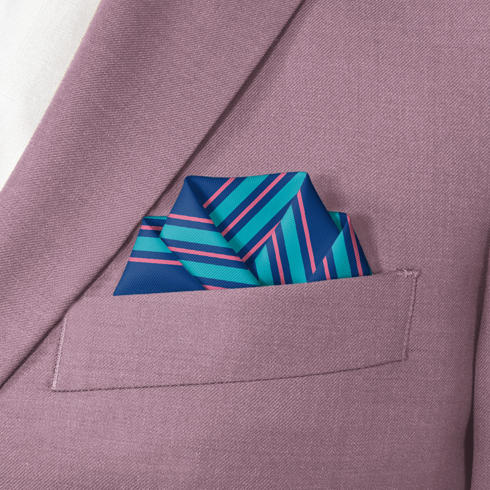 We print all our pocket squares on a recycled twill fabric made from plastic bottles that we have milled specifically for our products. We print our pocket squares on a single side and finish the edges with a fine purl edge. The back side of the pocket square will be unprinted.