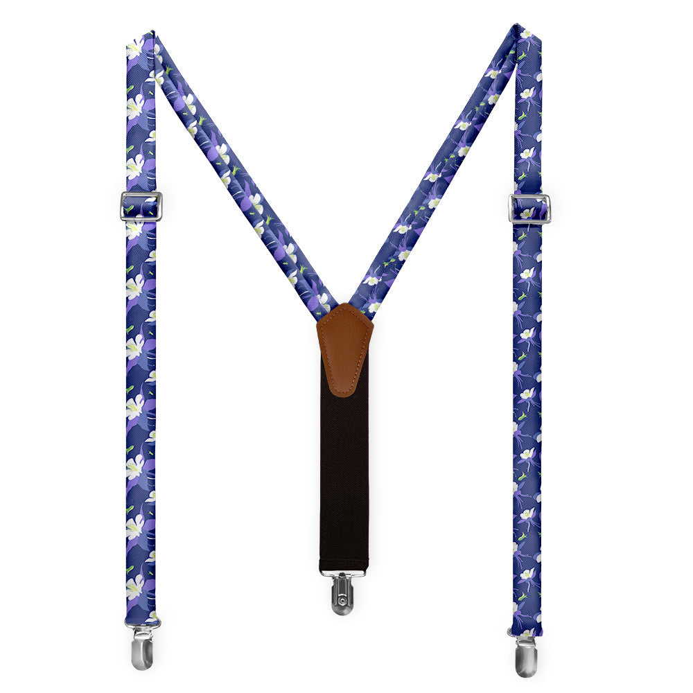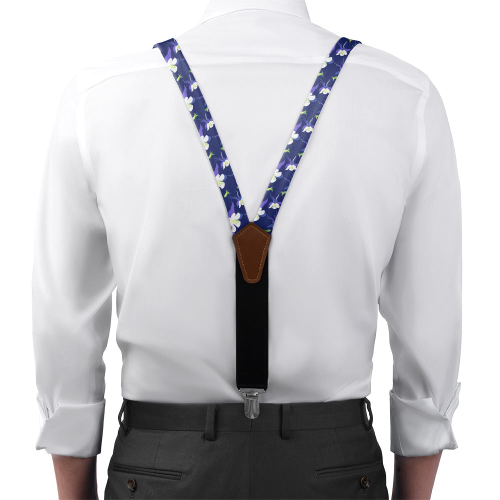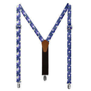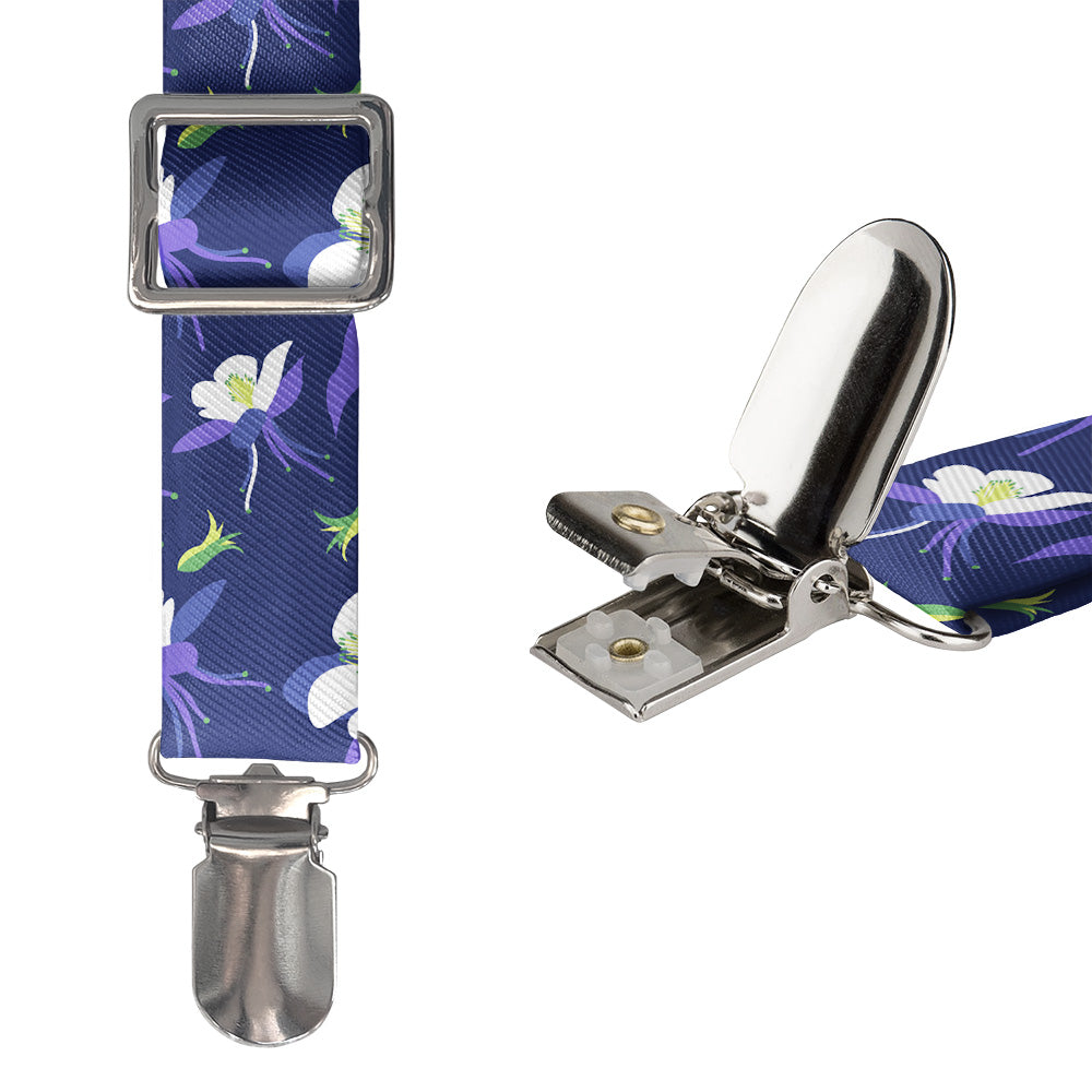 Printed fabric straps are 1-inch wide and secured to an elastic rear strap with vegan leather Y-back to allow the suspenders to move with you and extend as you bend. We use silver alligator pant clips that feature a special mechanism to ensure the suspenders clamp securely to pants.