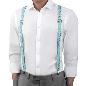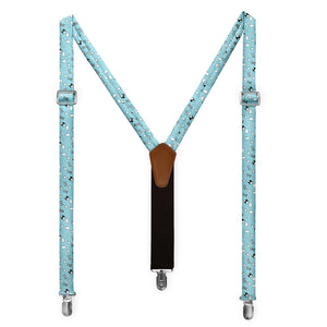 Printed fabric straps are 1-inch wide and secured to an elastic rear strap with vegan leather Y-back to allow the suspenders to move with you and extend as you bend. We use silver alligator pant clips that feature a special mechanism to ensure the suspenders clamp securely to pants.