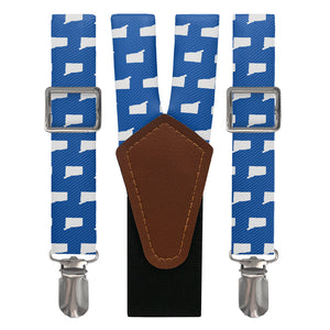 The Connecticut State Outline suspenders are a fun way to show your love for the Constitution State. These customizable suspenders feature a repeating motif of the state of Connecticut.