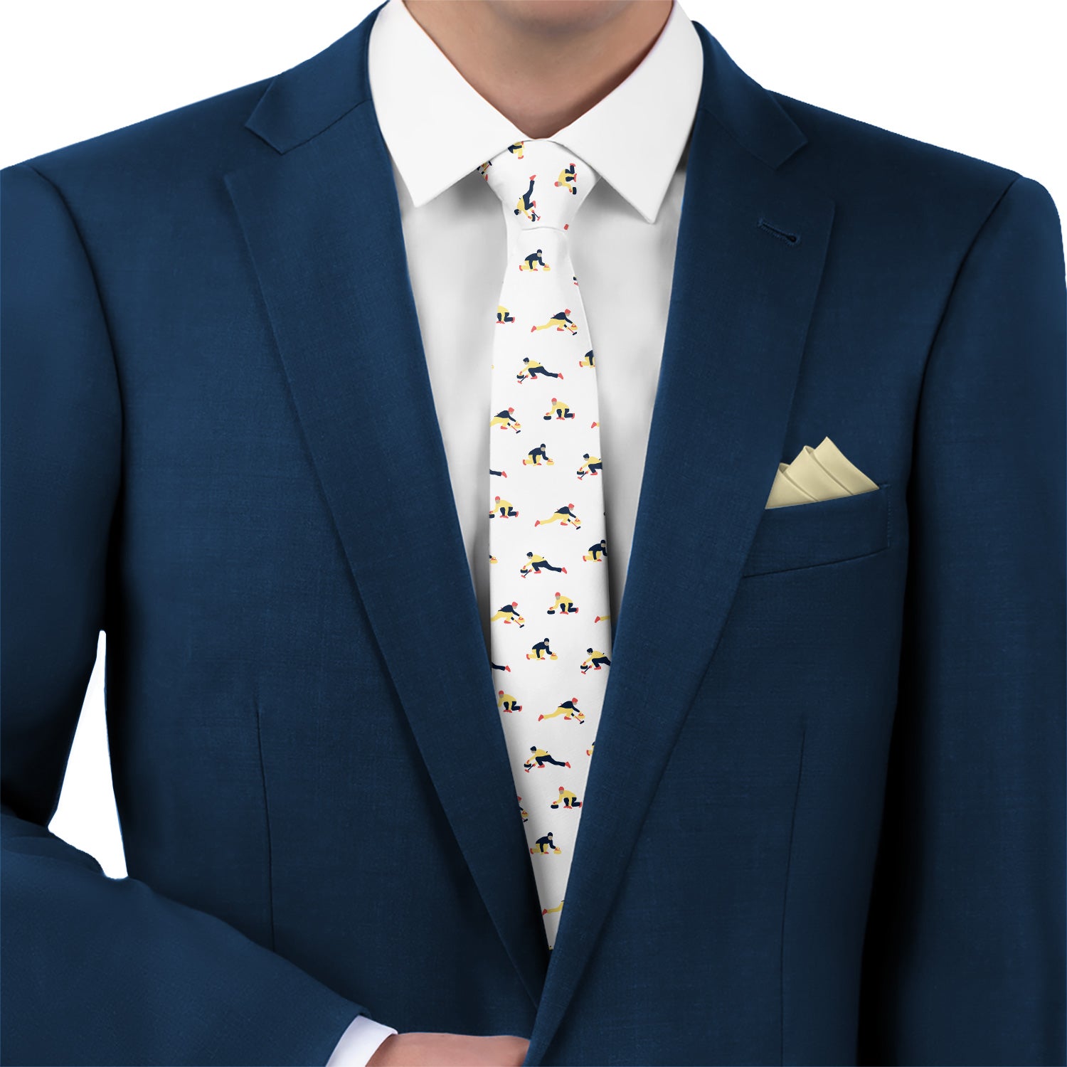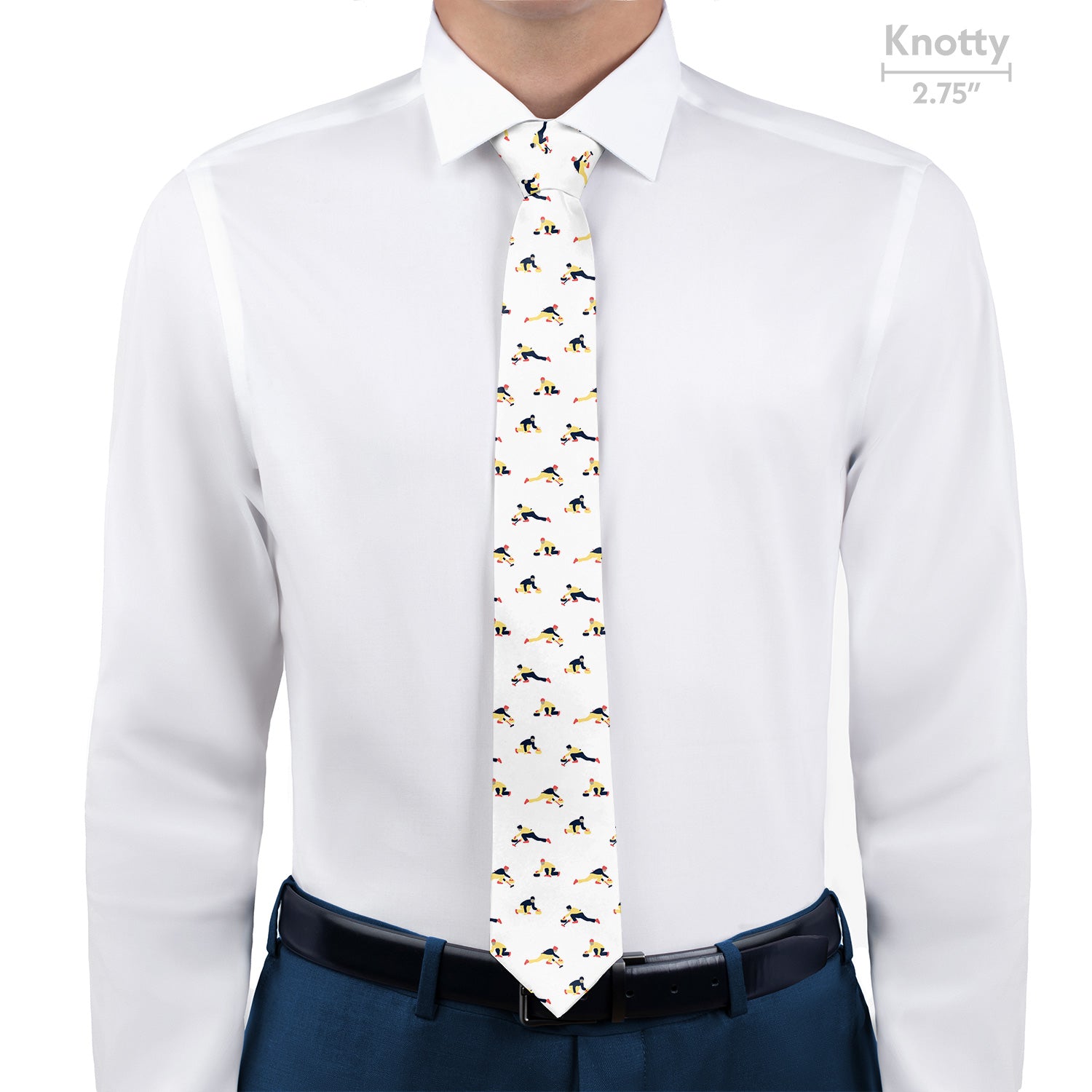 This Curling Classic Necktie features small repeating motifs of curling players sliding stones and sweeping the ice. The evenly spaced figures create a lively novelty pattern that reflects the motion and teamwork of the sport. The detailed curling illustrations form a playful all-over pattern that brings energy and character to the design.
