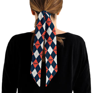 Your logo will take center stage with our Argyle 2 Custom Hair Scarf. This double-sided skinny scarf prominently displays your logo with a repeating motif set against an eye-catching argyle pattern, ensuring excellent visibility and a cohesive brand identity. Originating in the 1600’s in Argyll, Scotland, argyle represents prestige and sophistication, making the Argyle 2 Custom Hair Scarf an ideal option for economical gifts, uniforms, or even semi-formal and formal events. The three-color diamond pattern can be tailored to your preferred color scheme, thanks to our advanced dye-sublimation printing that guarantees vibrant, fade-resistant colors perfectly matched to your logo or brand. Crafted from premium recycled stretch poplin fabric, this silky and soft scarf is well-structured and exceptionally versatile - whether you prefer to wear it in your hair, around your neck or tied to a purse or bag.