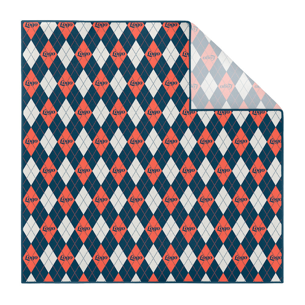 The Argyle 2 Custom Logo Pocket Square makes your logo the star by repeating it within the diamonds of the argyle pattern all over the entire single-sided pocket square. Argyle originated in Argyll, Scotland in the 17th century and has come to symbolize prestige and sophistication. The Argyle 2 logo pocket square is a favorite for gifting, uniforms, or semi-formal events. Companies, organizations and institutions large and small love incorporating their logo into this classic pattern. Our pocket squares are made with a premium recycled twill fabric we mill for our products to create a perfectly soft and durable fabric. Our print-on-demand manufacturing process uses advanced dye sublimation techniques for exceptional print clarity and fully thread-wrapped edges for a seamless look.