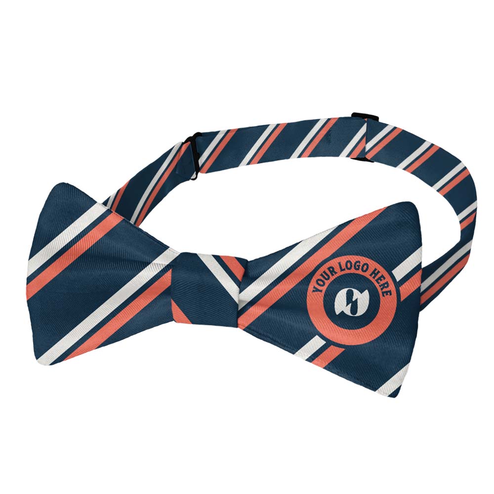 The Brooklyn 1 Custom Logo Bow Tie is a popular choice for those seeking a classic striped design. This timeless pattern features two 0.2-inch wide parallel stripes separated by a thinner 0.1-inch stripe. Your logo will be prominently displayed on one half of the bow tie, ensuring clear brand visibility. The Brooklyn 1 pattern is versatile and suitable for various organizations, including corporations, schools, and universities. Crafted from a soft, durable recycled fabric, these bow ties make excellent branded gifts or uniforms. Our fabric is custom-printed on demand using advanced dye sublimation techniques for exceptional print clarity and longevity.