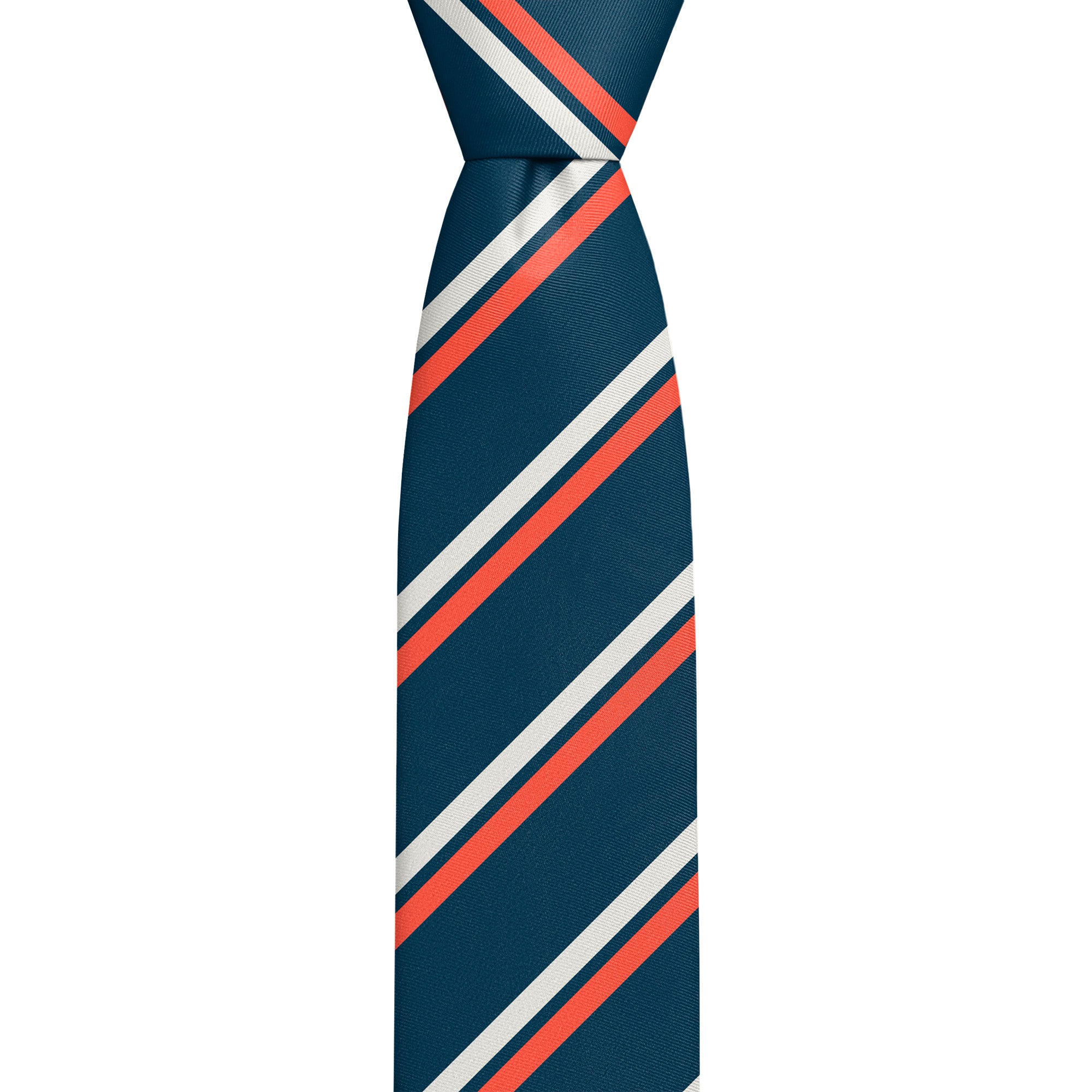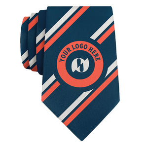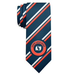 The Brooklyn 1 Custom Logo Necktie is one of our most popular patterns for those looking for a timeless striped tie. This classic three-color stripe pattern features two 0.2 inch wide parallel stripes separated by a thinner 0.1 inch stripe. Your logo will be centered on the widest part of the tie to showcase your brand with clarity and conviction. The Brooklyn 1 tie pattern is as equally suitable for banks and corporations as it is for universities and schools. Our supple and durable recycled fabric makes for perfect high-quality branded gifts and uniforms. Our fabric is made specifically for our ties and custom printed to order using versatile dye sublimation printing techniques for superior print clarity, continuity and wear resistance.