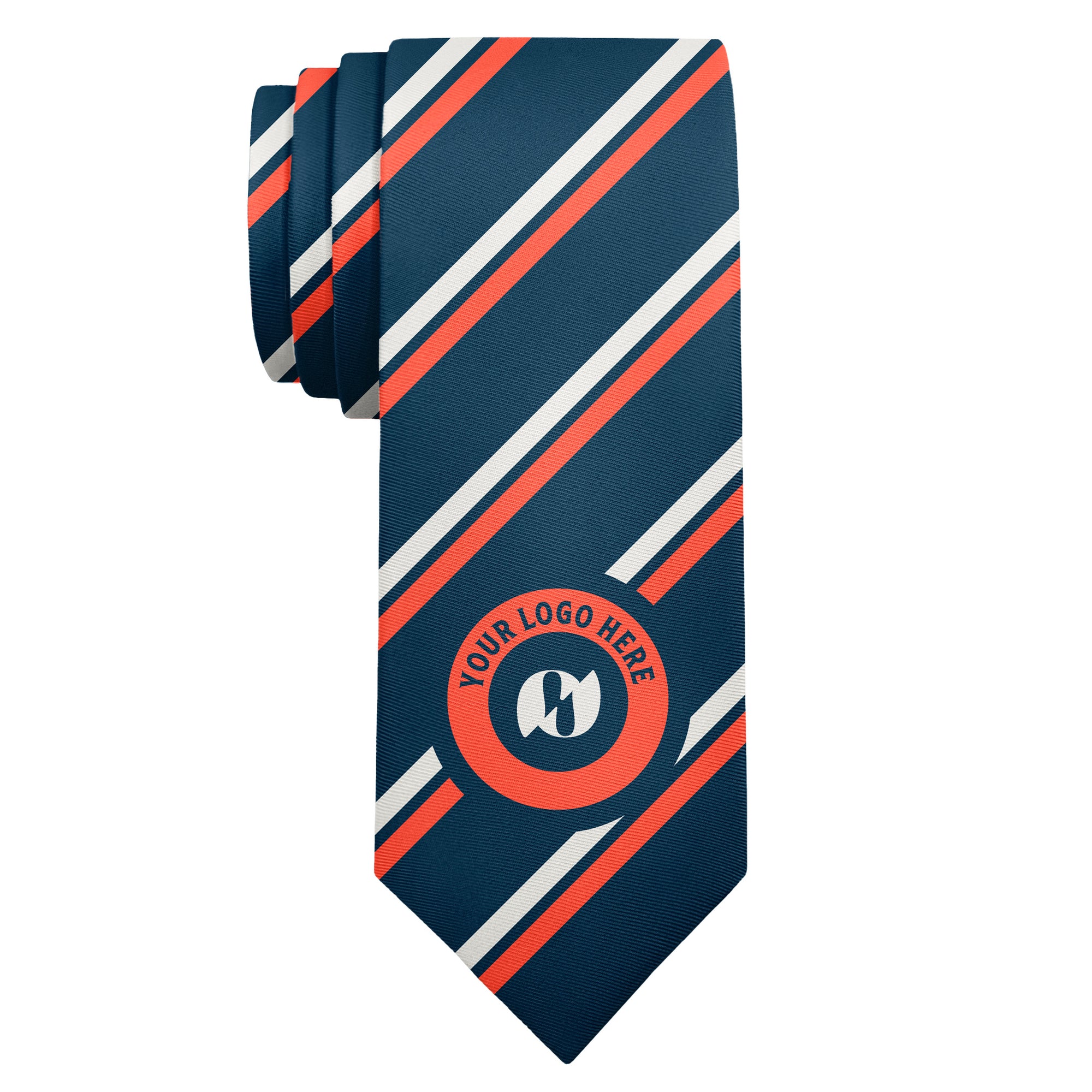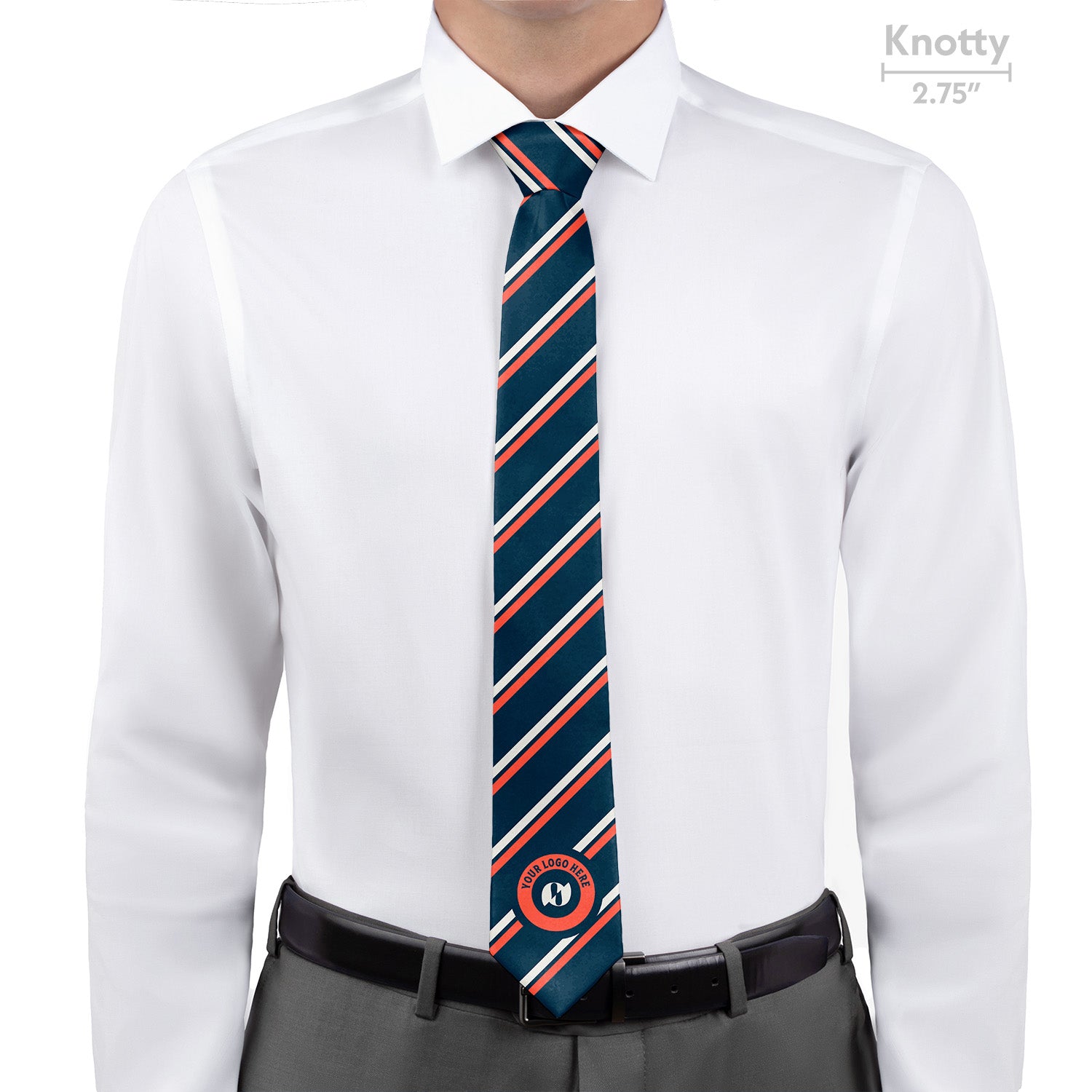 Single-placed logo centered on tie for ideal scale