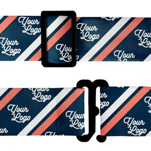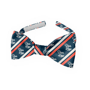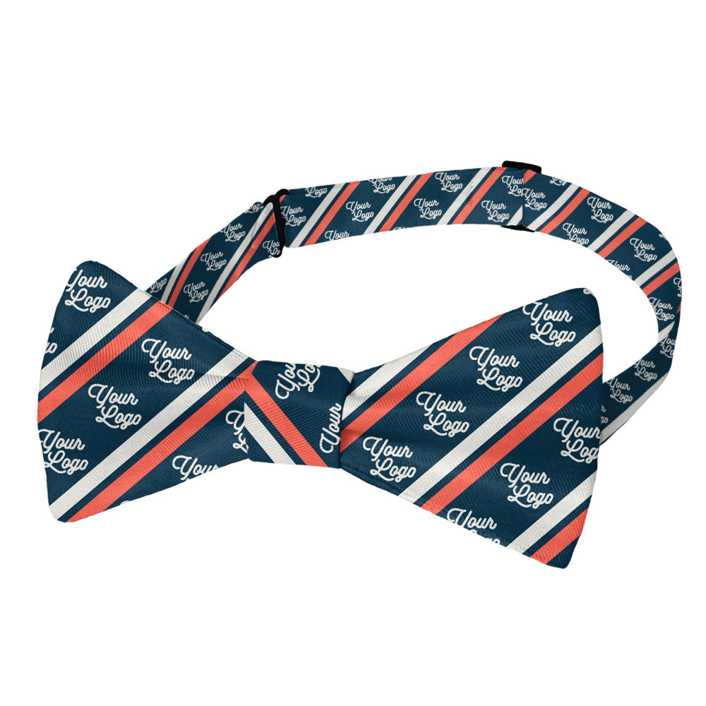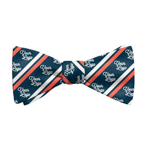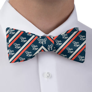 The Brooklyn 2 Custom Logo Bow Tie is a classic striped bow tie with a modern twist. Featuring two 0.2-inch parallel stripes and a thinner 0.1-inch stripe, this three-color design provides a sophisticated backdrop for your custom logo, which is repeated on the diagonal within the widest 0.8-inch stripe. The Brooklyn 2 pattern offers timeless versatility, and is popular with universities, schools, and businesses in various industries. Our bow ties are crafted from specially-milled recycled fabric and made in the USA, reflecting our commitment to ethical and sustainable manufacturing. With customizable stripe sizes, multiple style options, and advanced dye sublimation printing, we offer unparalleled quality and design flexibility.