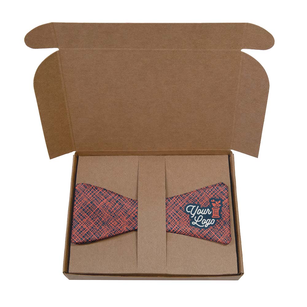 Seamlessly weave your brand identity into your bow tie with the Burlap 1 Custom Logo Bow Tie. Made to look like heavy, plain-woven jute or hemp fabric, this two-color pattern gives the illusion of textured burlap. This bow tie features your logo single-placed on one half of the bow for maximum scale. This eye-catching design adds depth and intrigue, making it a perfect choice for those seeking a sophisticated yet understated look. This bow tie is equally well suited for both professional and social settings, and its classic style complements various industries. Crafted from premium, fade-resistant recycled fabric with a silk-like finish, our bow ties offer exceptional printing results, durability and elegance.