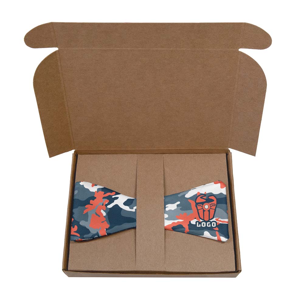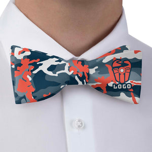 The Camo 1 Custom Logo Bow Tie blends professionalism with adventurous spirit. Perfect for those in military, outdoor, wilderness organizations, or any brand that appreciates camo style, this striking bow tie features a dynamic five-color camouflage pattern with your logo prominently placed on one half of the bow, ensuring maximum visibility and impact. Ideal for uniforms or company events, this bow tie is customizable in your brand’s colors, allowing you to showcase your brand’s outdoorsy identity without sacrificing style. Crafted from premium recycled twill fabric, this bow tie not only feels luxurious but also holds up to wear for a bow tie that never loses its appeal. The Camo 1 logo bow tie perfectly captures the spirit of adventure while maintaining a professional edge.