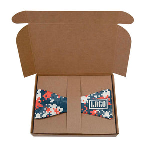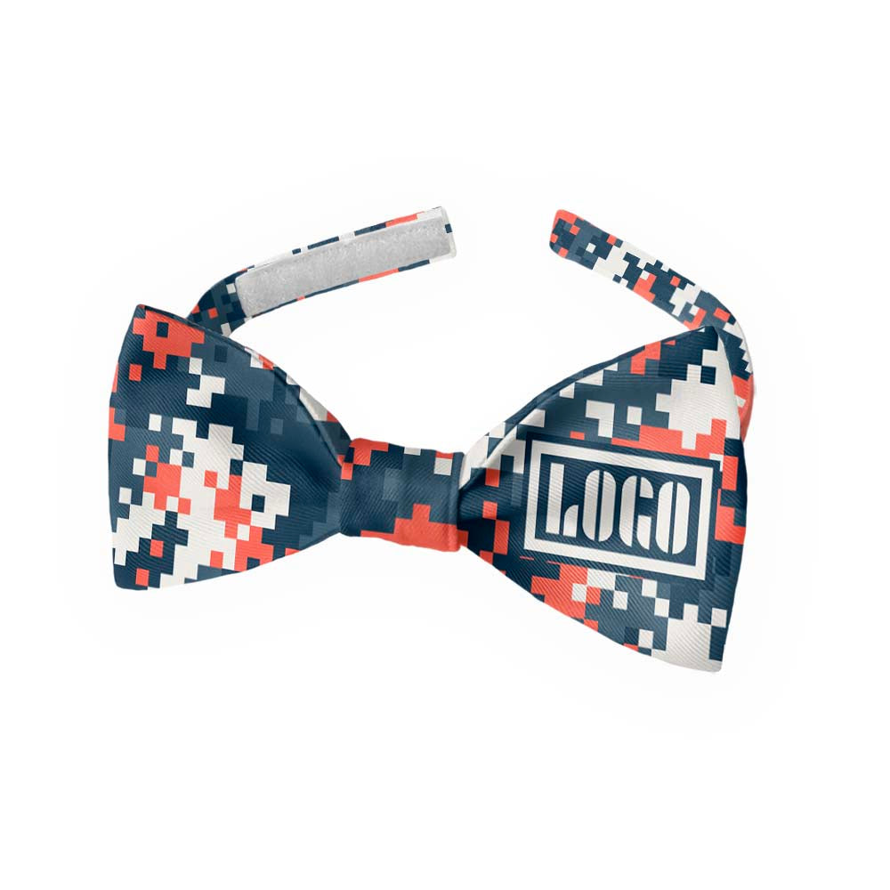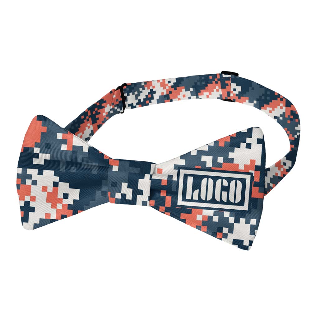 Make a statement while maintaining a sense of subtle sophistication with our Digi Camo 1 Custom Logo Bow Tie. Perfect for outdoor enthusiasts, military events, or tech companies that want to add a modern twist to their brand identity, this striking bow tie features a digitized camouflage pattern that is both adventurous and refined. Your logo will be prominently displayed on one half of the bow for maximum impact—ideal for uniforms or corporate gatherings. Customizable to match or compliment your brand's colors, this four-color bow tie allows you to express your intrepid spirit without sacrificing sophistication. Our recycled twill fabric is soft, silk-like, durable and non-fading and perfectly shows off our vibrant dye sublimation printing, resulting in exceptional quality bow ties.