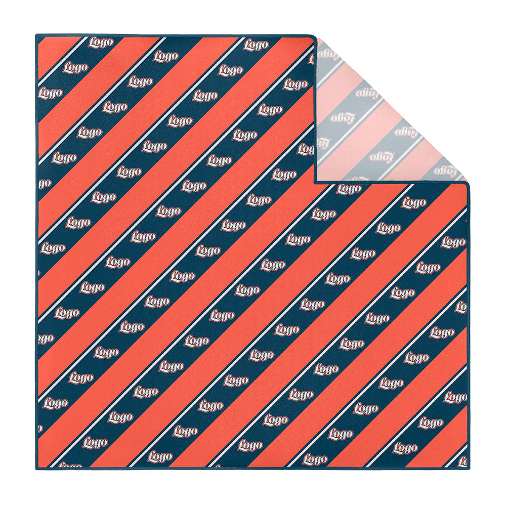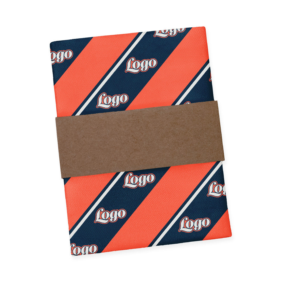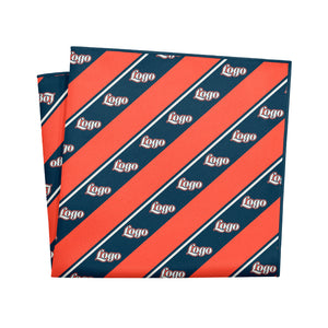 A tried and true pattern that has earned its stripes, meet our popular Federal 2 Custom Logo Pocket Square. This pattern is a classic three-color stripe design, featuring two quite thin 0.06-inch parallel stripes set between two wider 0.7-inch stripes, and each stripe can be customized in your color choice. Your logo is repeated throughout the entire pocket square, on the diagonal within a wider stripe, ensuring that your brand will be seen no matter how this fun and versatile accessory is worn or folded. This traditional pattern has just the right modern touch, making it a great choice for most industries, and our soft but durable high quality recycled polyester twill makes this pocket square a long-lasting pick for both occasional events or daily uniforms.