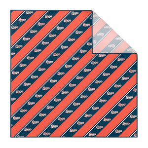 Logo is repeated on the diagonal within stripe across the entire pocket square