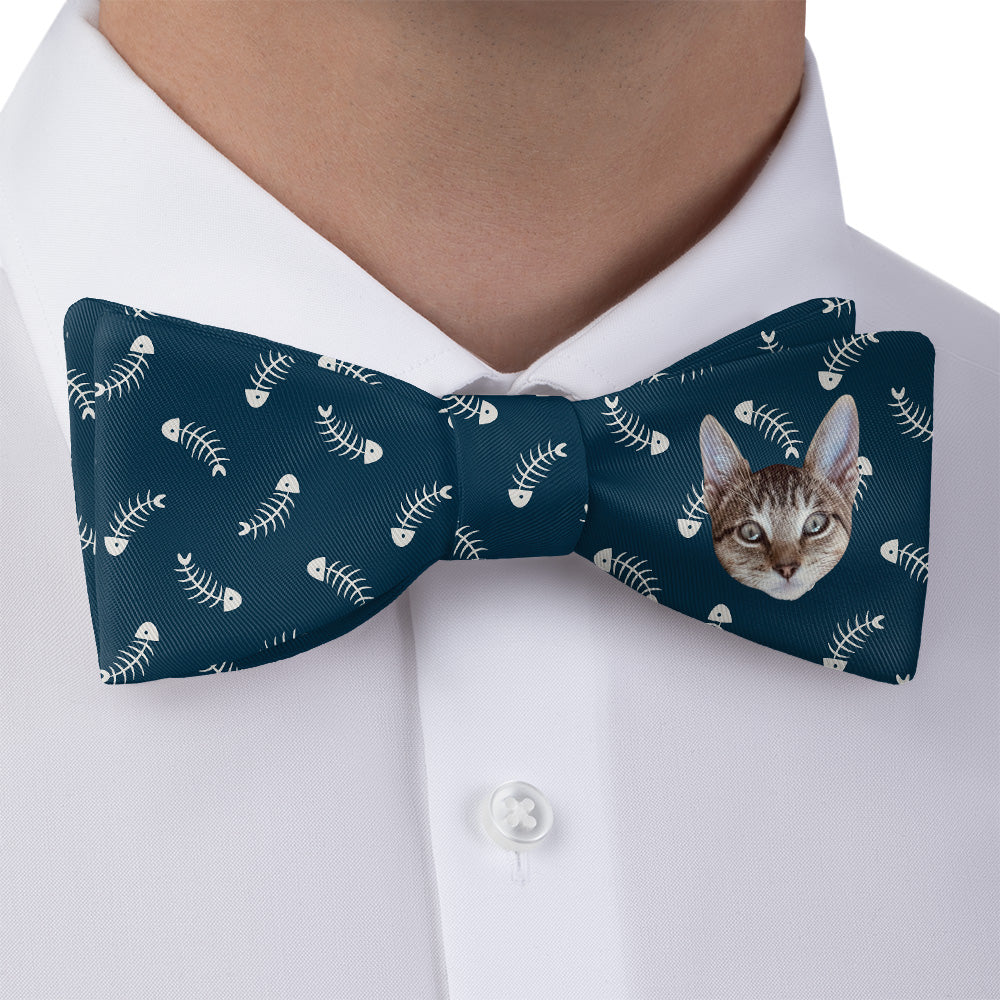Celebrate your cat’s playful hunting instincts with our Fish Bone Custom Photo Bow Tie! This cheeky design features a repeating fishbone pattern with your cat’s photo centered prominently on one side of the bow tie. The two-color pattern is fully customizable, allowing you to highlight your cat’s face, a full-body shot, or even a group photo of multiple feline friends. Made from premium recycled fabric and printed with advanced dye-sublimation techniques, the design wraps fully around the bow tie for a polished, high-quality look. Quirky, fun, and one-of-a-kind, this bow tie makes the perfect gift for cat lovers.