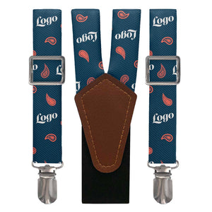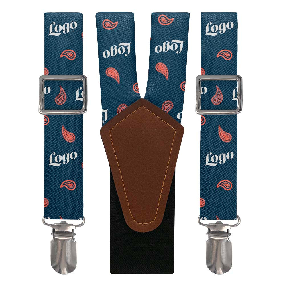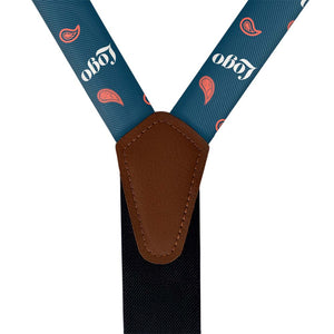 Playfully incorporating your logo or graphic into our whimsical and sweet paisley motif, the Paisley 2 Custom Logo Suspender pattern is perfect for those who appreciate subtle and elegant design. The repeating teardrop-shaped boteh pattern will sit alongside your repeated branding throughout both suspenders traps. Paisley is thought to have been created 2,000 years ago in the Middle East, and has been adopted into bohemian and art nouveau aesthetics over the years. With a rich and lengthy history, this pattern remains eye-catching and fashionable even today, making this pattern a popular choice for all types of organizations looking for a timeless pattern with a classic and thoughtful touch. With its exceptional print clarity, our advanced dye-sublimation will bring out the best in both your branding and this paisley print.