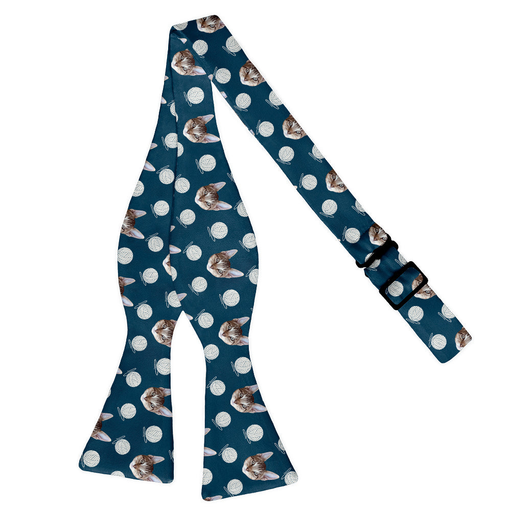 Don’t get tangled up in finding the perfect cat-themed bow tie—our Yarn Custom Photo Bow Tie is purrfect for all cat lovers! This playful design features your cat’s photo repeated among whimsical balls of yarn, creating a pattern as charming as your furry friend. We recommend using a clear photo of your cat’s face, or a full-body shot if you prefer. Prefer a single photo in the center instead of a repeating pattern? We can do that too—just let us know! Each bow tie is fully wrapped with our high-quality custom-printed recycled twill fabric, ensuring a polished, vibrant design that makes it a delightful gift for any cat enthusiast.