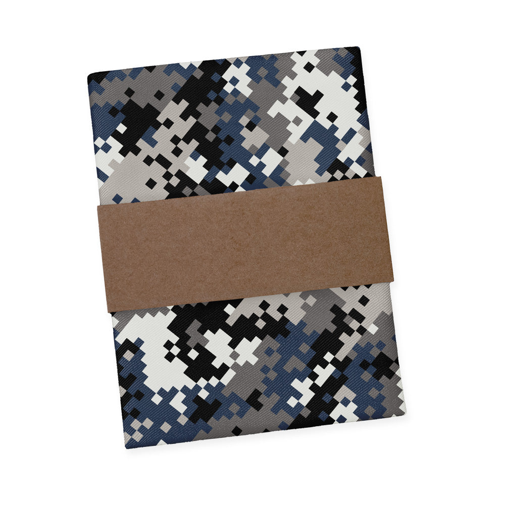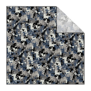 We print all our pocket squares on a recycled twill fabric made from plastic bottles that we have milled specifically for our products. We print our pocket squares on a single side and finish the edges with a fine purl edge. The back side of the pocket square will be unprinted.