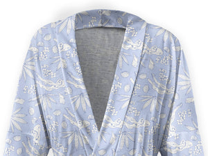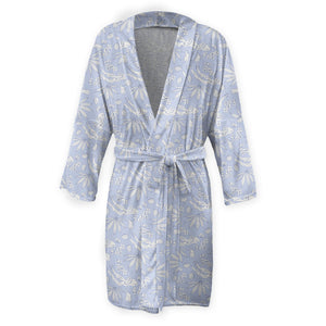 These hand drawn motifs visually tell the story of a day at the beach and the treasures that washed ashore. The Driftwood Floral robe is perfect for getting ready for any event or just lounging in comfort at home.