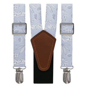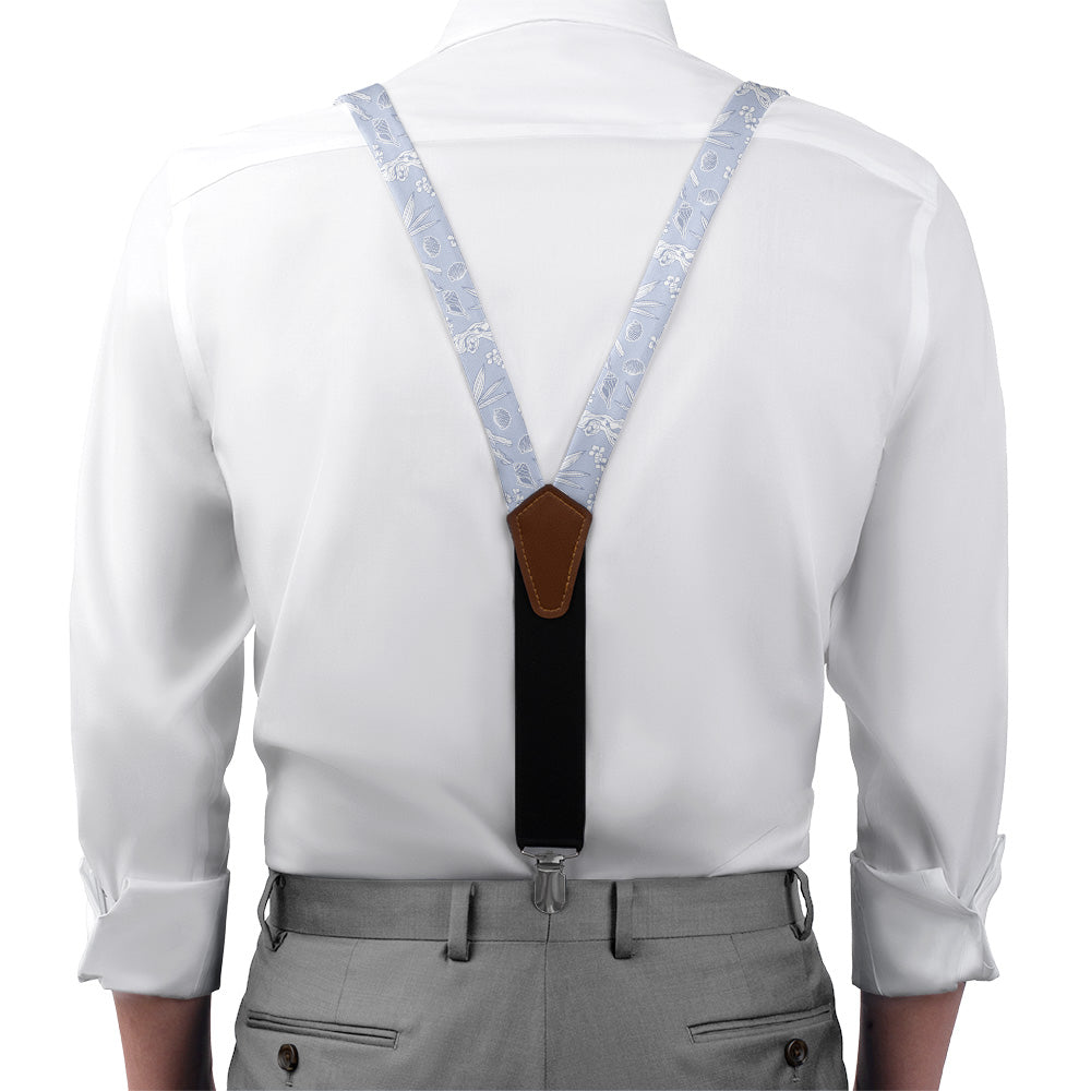 Printed fabric straps are 1-inch wide and secured to an elastic rear strap with vegan leather Y-back to allow the suspenders to move with you and extend as you bend. We use silver alligator pant clips that feature a special mechanism to ensure the suspenders clamp securely to pants.