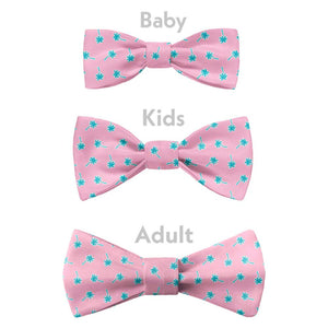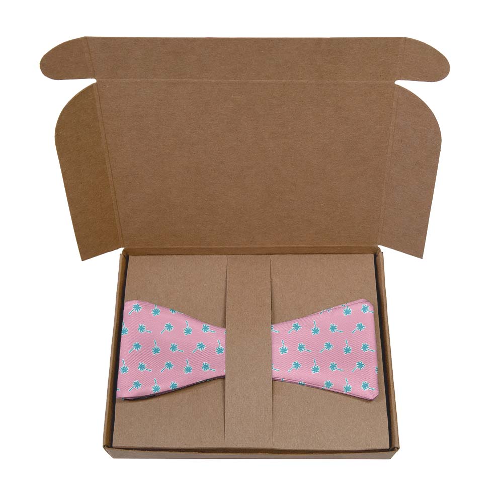This retro palm tree bow tie evokes long days on the beach and hot Miami nights. Bright colors and whimsical palm tree give the Electric Palm bow tie serious summertime vibes, while the small, repeating pattern is perfect for the office or special occasions.