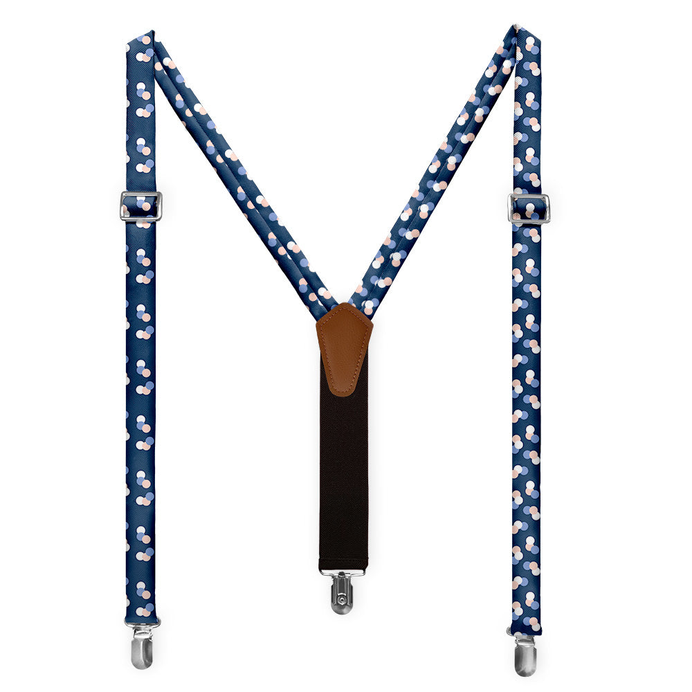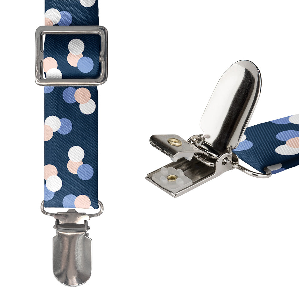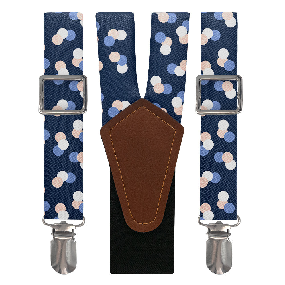 This playful polka dot pattern is fit for a celebration as it reminds us of falling confetti! The Elizabeth Dots suspenders, a four color pattern, is easy to customize. Design your own suspenders in the perfect colors for your occasion.