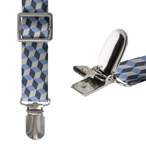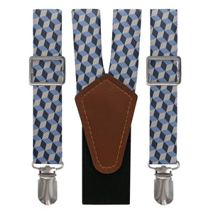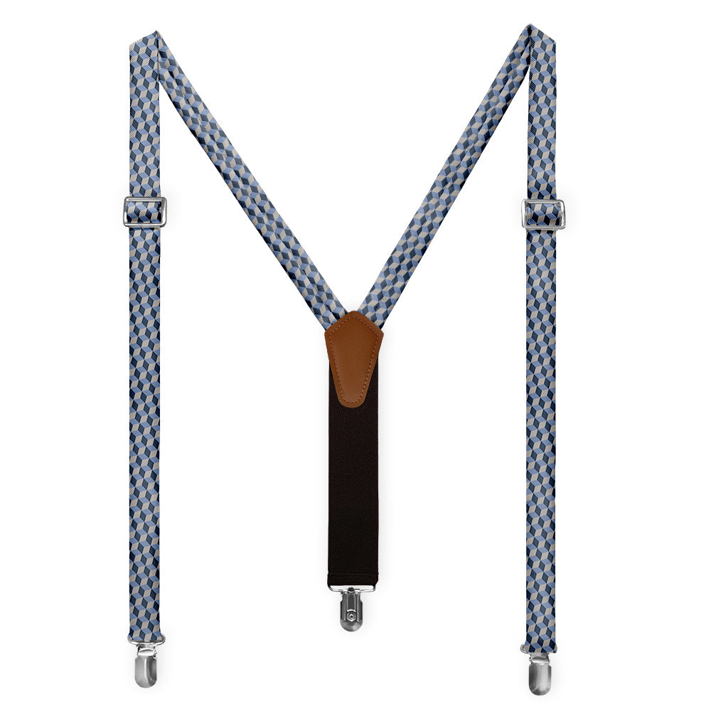Like the tessellations of the great graphic artist MC Escher, this isometric cube design fools the eye into thinking it is three dimensional! Design your own Escher Geometric suspenders by pairing this optical illusion pattern with your color scheme.
