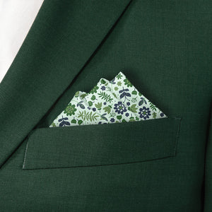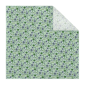 We print all our pocket squares on a recycled twill fabric made from plastic bottles that we have milled specifically for our products. We print our pocket squares on a single side and finish the edges with a fine purl edge. The back side of the pocket square will be unprinted.