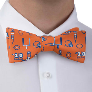 Elevate your game day look with our First Down Football Bow Tie! This playful bow tie features a unique design that captures all the excitement of a football game - from field goals and first downs to helmets, footballs, and 10-yard lines. Personalize the pattern with your team's colors and let your spirit shine, whether you're rooting for high school, college, or NFL football teams.