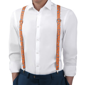 Printed fabric straps are 1-inch wide and secured to an elastic rear strap with vegan leather Y-back to allow the suspenders to move with you and extend as you bend. We use silver alligator pant clips that feature a special mechanism to ensure the suspenders clamp securely to pants.