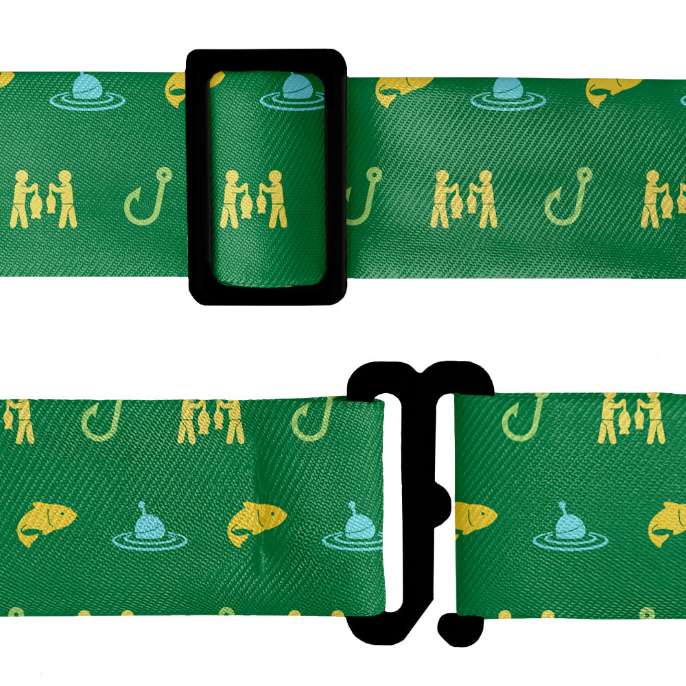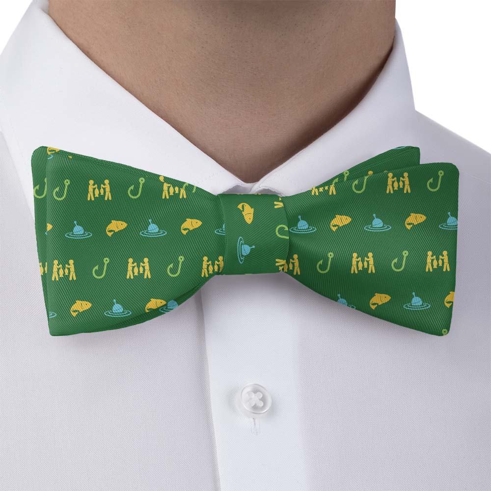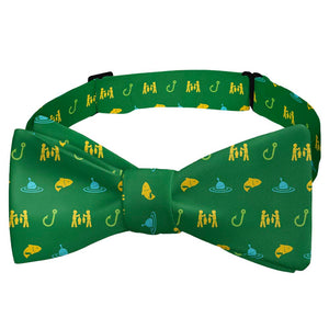 Rather be fishing with a buddy? This is the bow tie for you! Fish hooks, bobbing floats, swimming fish, and triumphant fishers makes the Fishing with Friends bow tie a great catch.