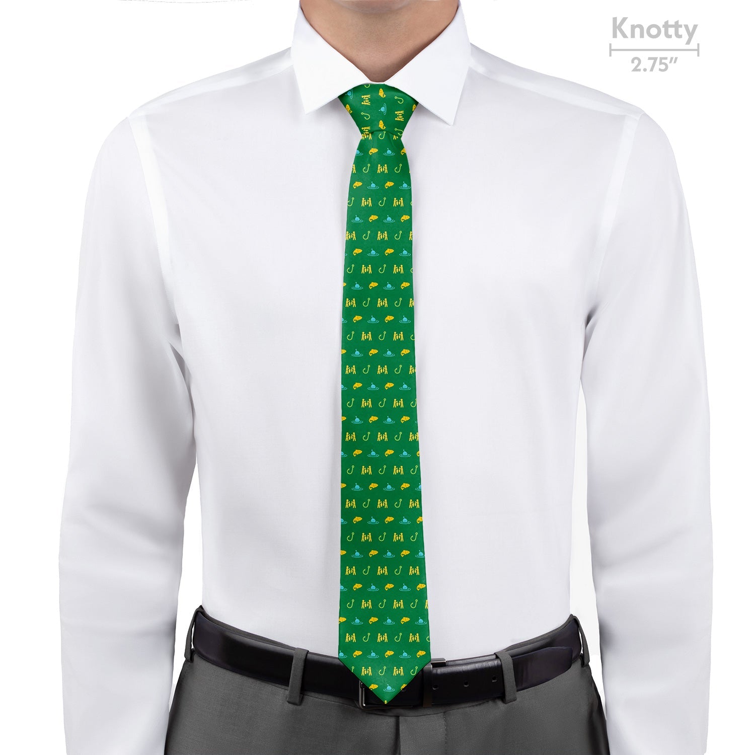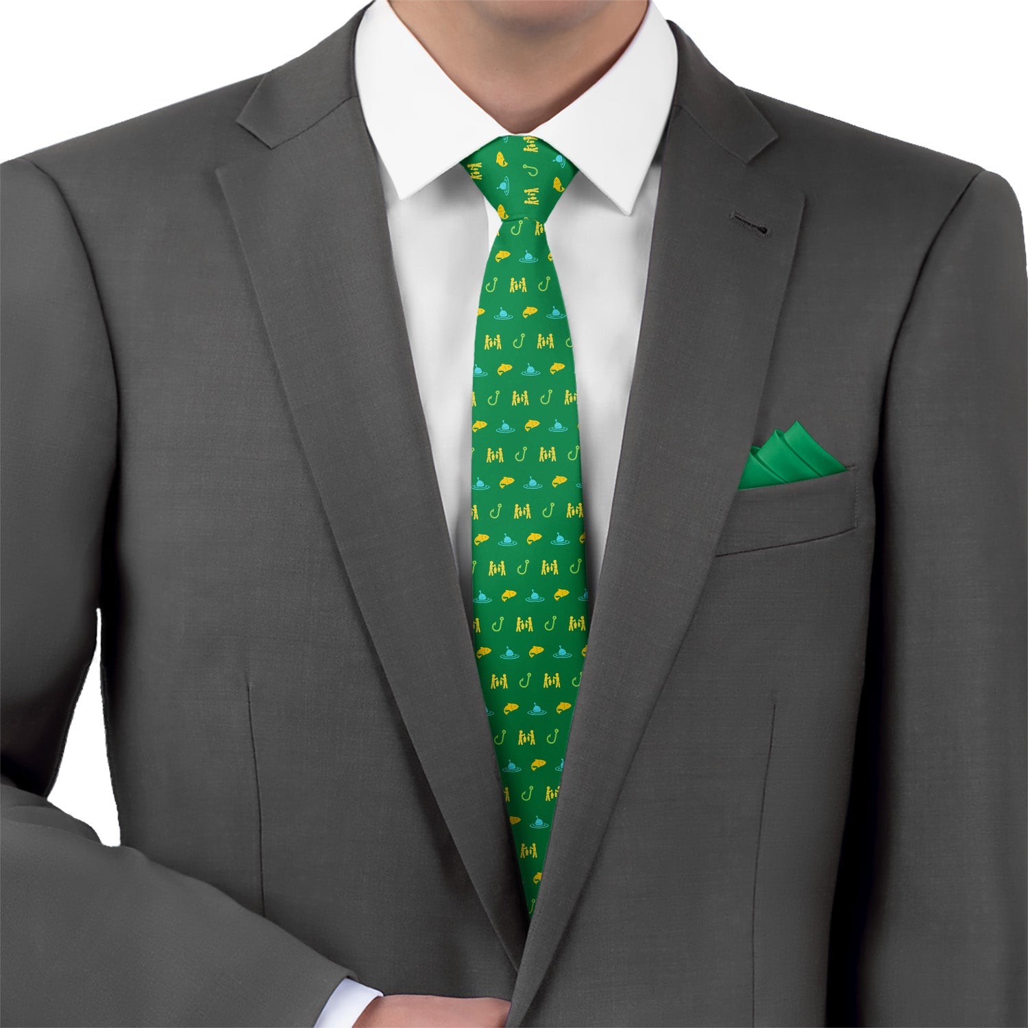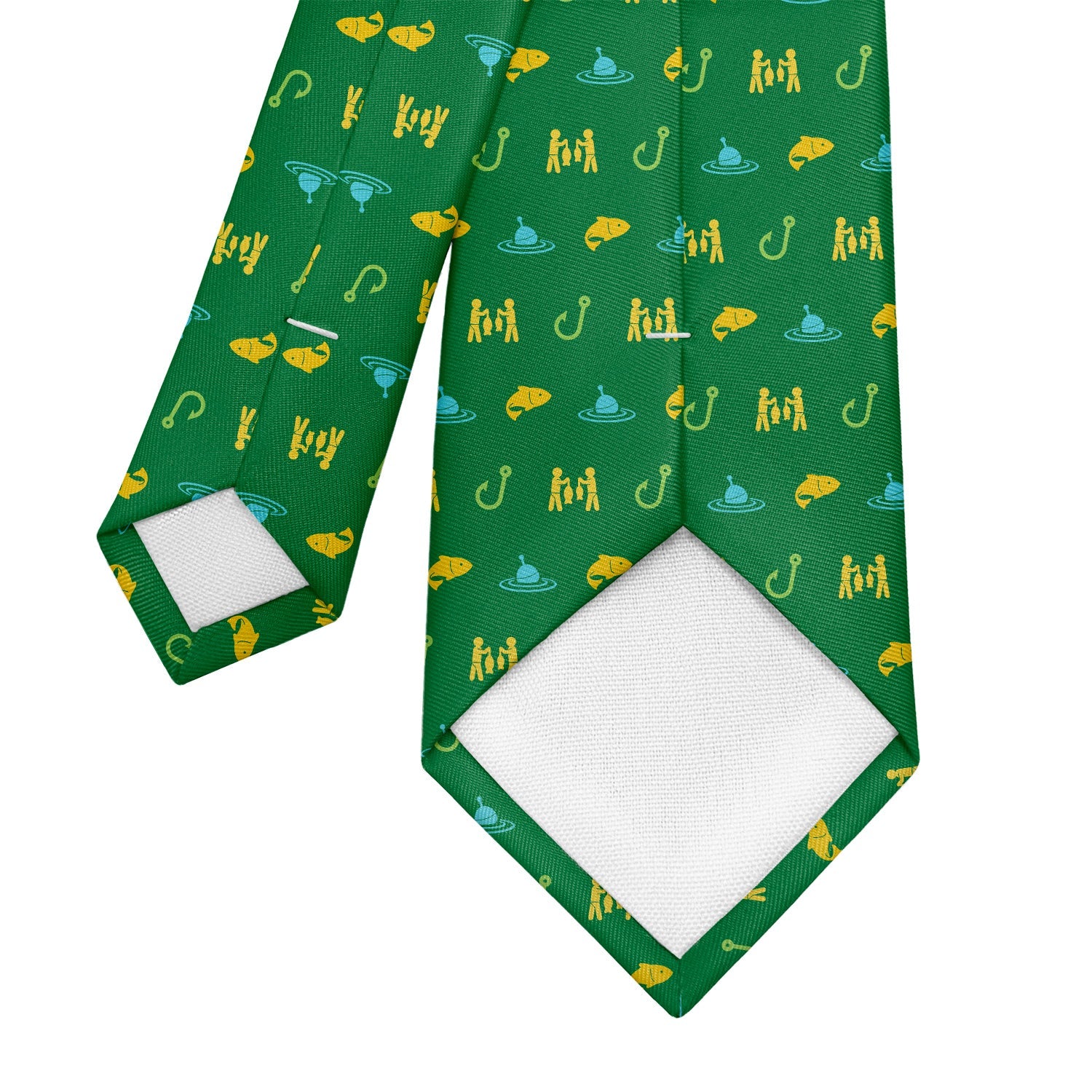 Rather be fishing with a buddy? This is the tie for you! Fish hooks, bobbing floats, swimming fish, and triumphant fishers makes the Fishing with Friends necktie a great catch.
