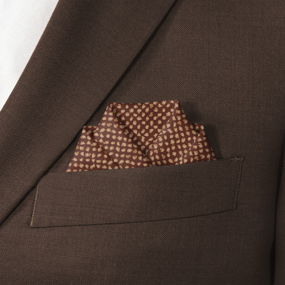 We print all our pocket squares on a recycled twill fabric made from plastic bottles that we have milled specifically for our products. We print our pocket squares on a single side and finish the edges with a fine purl edge. The back side of the pocket square will be unprinted.